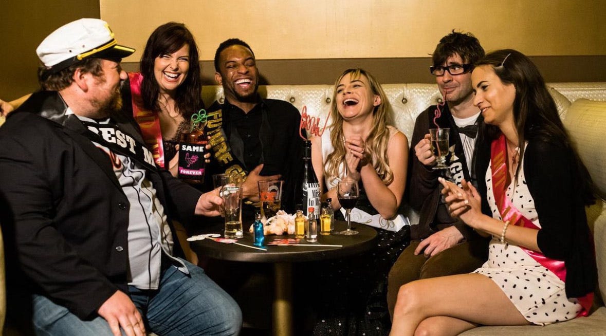 The HRS/Cherry Poppins team are known for their incredible cabaret musical parodies, just absolutely ribald affairs that bring an electric energy. We’ve been watching them for years and more than once the Alli Miller-Fisher and Sarah Haworth-Hodges led Cherry Poppins have slid over into experiential antics, like with their Cluelesque production. I’m also a bit over the moon because Alli’s husband and frequent collaborator Michael Shaw Fisher, whose Exorcistic HRS just co-produced in LA and NYC is along for this gig as part of the team. Not only is his Shakespeare’s Last Night Out one of my favorite one man shows ever, but we made theatre and films together back in college. We’ve acted with and for each other and I know how much he brings to any work.