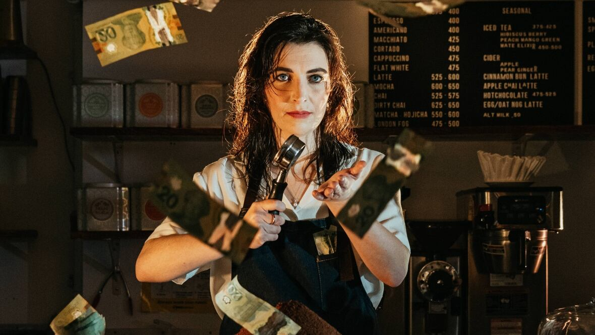 Performance Review is structured around seven autobiographical stories, each recounting Small’s worst day while working at seven different jobs — a barista, a TV staffer, a writer, amongst other gigs. It’s a site-specific work that embraces its setting, with Morning Parade effortlessly standing in for the coffee shop of her past, but also transforming into the other sites that appear in the story. The tables, previously resting places for lattes and laptops, become dynamic performance spaces. Small makes ample eye contact, navigates the space with intention, and even gently relocates people (and their beverages) as needed. The café’s lighting is cleverly adapted to shift the atmosphere, while what first appeared to be ordinary café furniture — like a glass pastry case, once filled with pre-show treats — takes on an entirely new function during the performance.