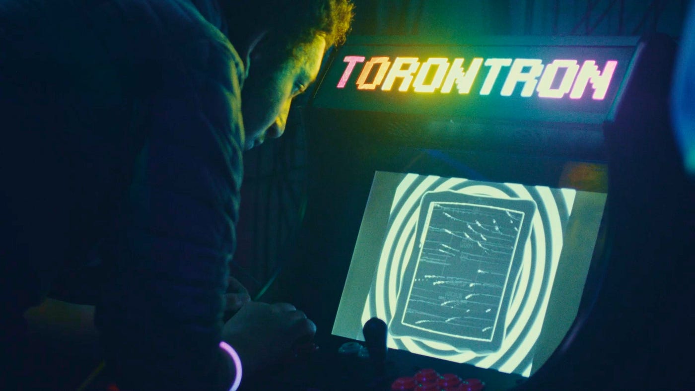 Where FLUX truly shines is in its puzzle design, offering a wide variety of ways to play: word puzzles, decoding, trivia, and even some light social engineering. An arcade station, created in collaboration with Pocket Moon Games, added to the space’s ambiance and provided another unique puzzle peripheral. Compared to other similarly structured trail-based immersive shows I’ve attended, the puzzles at FLUX were definitely more robust. Some puzzling competency is required, but the experience is thoughtfully constructed to deliver satisfying “aha” moments without stalling momentum. In addition, when needed, the cast was quick to offer in-character nudges that kept the flow moving smoothly.