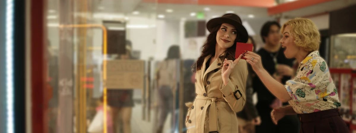We’re standing in [REDACTED] plaza, on a sunny afternoon in downtown Los Angeles, trying to make ourselves seem trustworthy so our new contact [REDACTED] at The Agency can guide us in finding a spy who has gone rogue. Suddenly, the phone rings. I’m listening intently when I start to laugh because our contact instructs us to “act more normal” among the crowd. I glance over to my right and there’s a family sharing a Korean style crispy corn dog, the kind covered in potato cubes. Next to them are some cosplayers waiting patiently in line at the Sanrio store nearby. Someone else crosses my path, carrying anti-Trump protest sign. Sure. I’m the one who needs to “act more normal.”