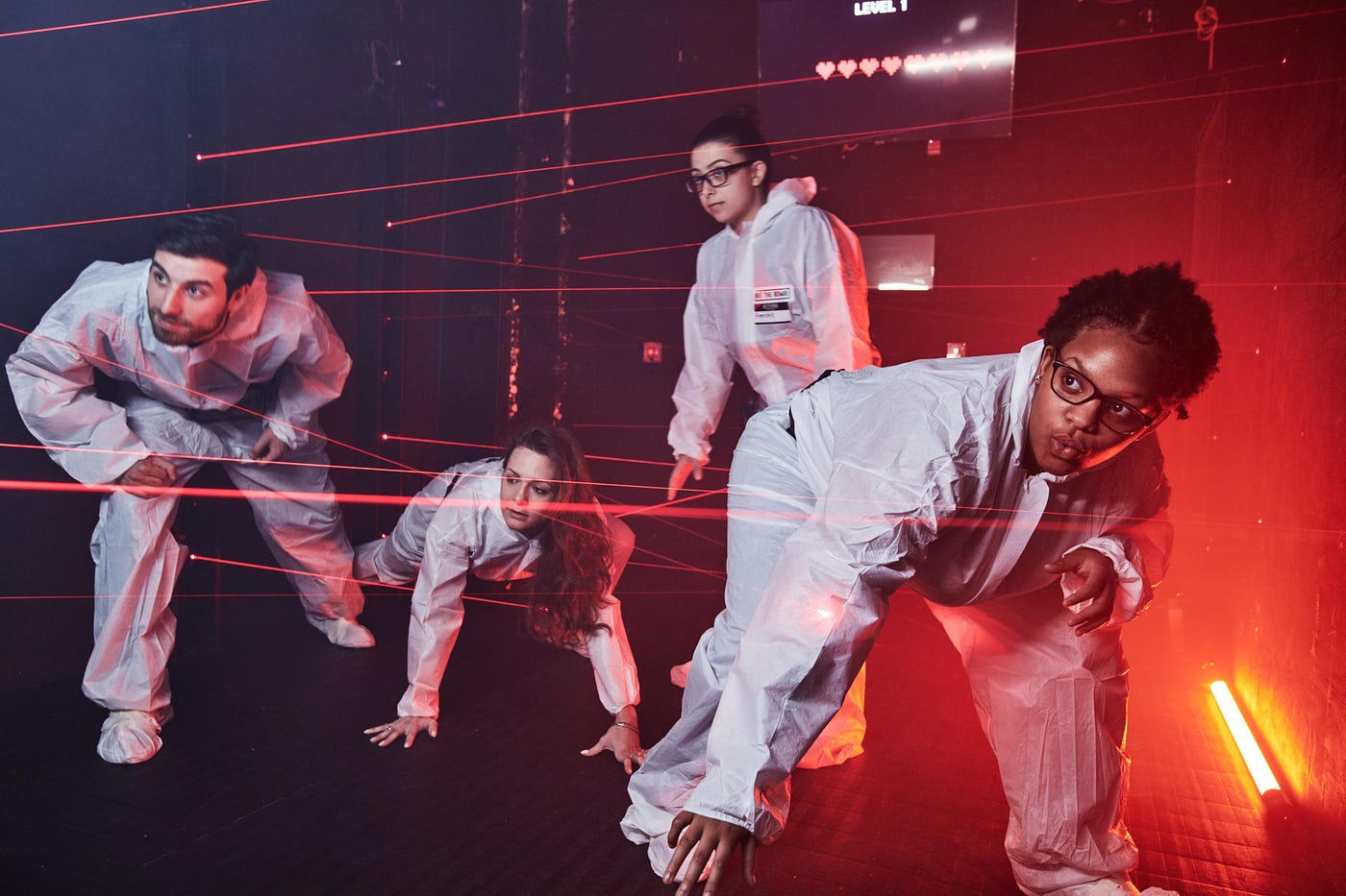 My mission began as my group of four entered the first of four rooms where we interacted with technology to play different games. In one room, we shouted information at each other from six different terminals around the room to complete puzzles. In another, wearing bracelets that allowed the technology to track us, we moved around the room to complete sequences on the screen. In yet another, we fulfilled childhood dreams of jumping over and crawling under a room crisscrossed with moving laser beams.