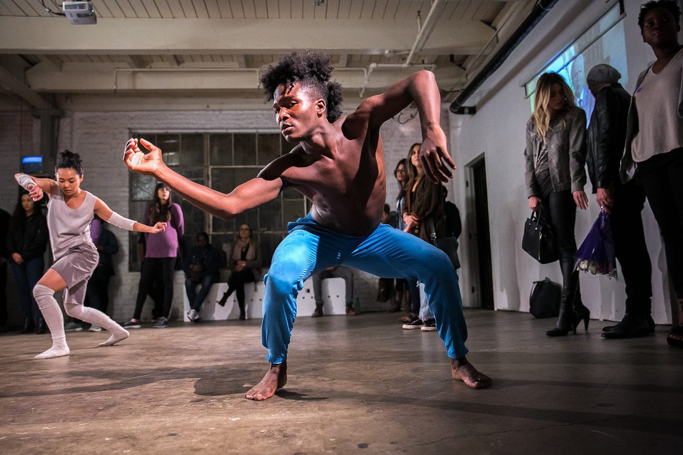 Yet there I was on a Friday night in South Los Angeles, quite off the beaten path of the Art District pop-ups, Westside apartment one-on-ones, and Eastside explorations of the American canon. Standing inside the main room of a studio space that has been transformed into the venue for The Other Side — the debut immersive dance-theatre from Iris Company — with a dancer delicately placing grapes at various points on my person.