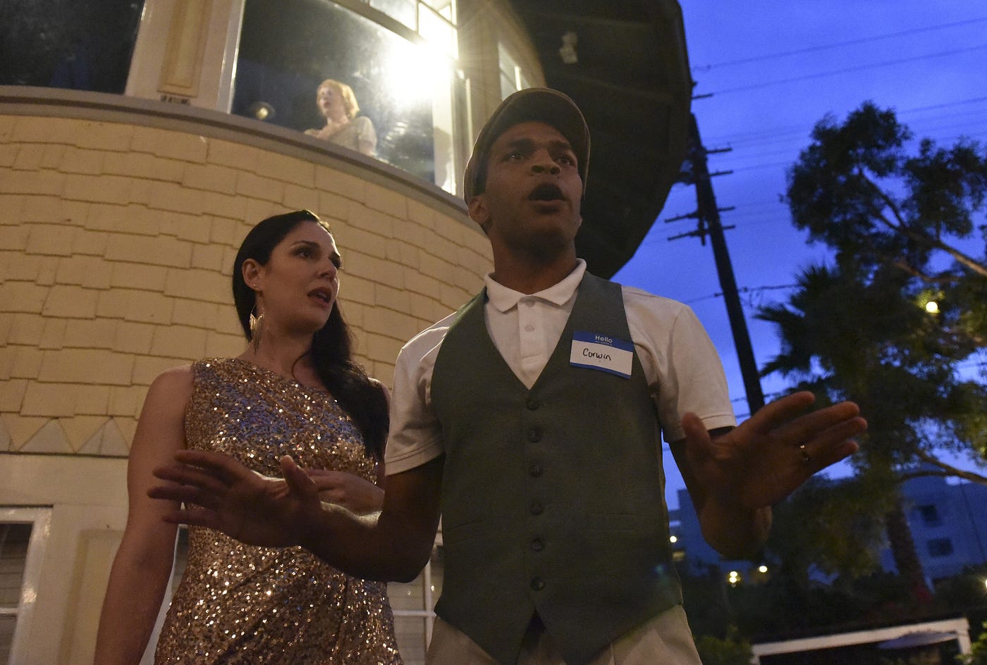 With that tone as the jumping point the assembled audience members — a mix of bloggers, HBO execs, and others who aren’t your usual SoCal immersive theatre going types — were cast as members of the New Coast Home Owners Association on the opening night of the new community Clubhouse. We were there to get tours of the new facility, and be hit up for big checks for HOA President Bill Rodgers’ dream of a Children’s Reading Room and Youth Program.