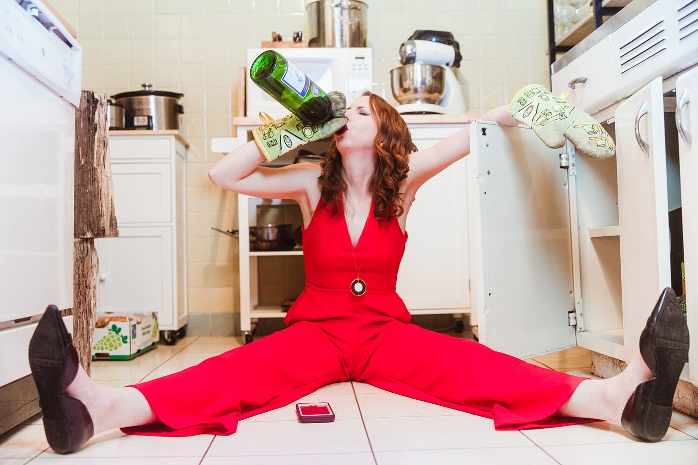 Once all audience members are with drinks in hand, our party planning hosts Henry and von Hopper thank us for meeting here at the apartment instead of Rigby’s bar like in previous years. They explain that they’re hosting a party here over concerns that their friend Julia (Christina Renee Jones) is struggling with her decision to call off her wedding during last year’s party. When Julia arrives, she’s caught off guard to see everyone, insisting that everything’s “fine” between her ex-fiance-yet-still-current-and-live-in boyfriend. Yet, when pressed, Julia admits that her boyfriend has grown more distant as this Valentine’s Day approached. She’s been unable to get a hold of him today. Despite this situation, Henry and von Hopper proclaim the party is still on, guiding the audience into conversations or entertainment in the hopes of raising Julia’s spirits.