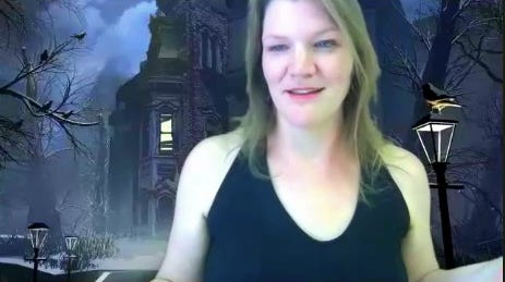 Several days before the event, I receive an email from “Auntie Boddy” inviting us to a dinner party at “Boddy Mansion.” The invitation comes with a guest list assigning us all a character to play, as well as background information and a potential murder motive for each character. I play as Miss Clementine, the owner of Fruity McFireflies, a local sci-fi bookshop-slash-smoothie joint that has made a killing selling smoothies to ghost hunting tourists who have traveled to visit Boddy Mansion. Each player is instructed to decorate our spaces and ourselves in colors and costumes that match our character name. We are also told to prepare a drink, an entree, and a dessert to eat along with everyone else at the virtual “dinner party.” Lastly, we are given a character introduction to read to the group, as well as secret clues that we are supposed to share with the group at different phases of the game.