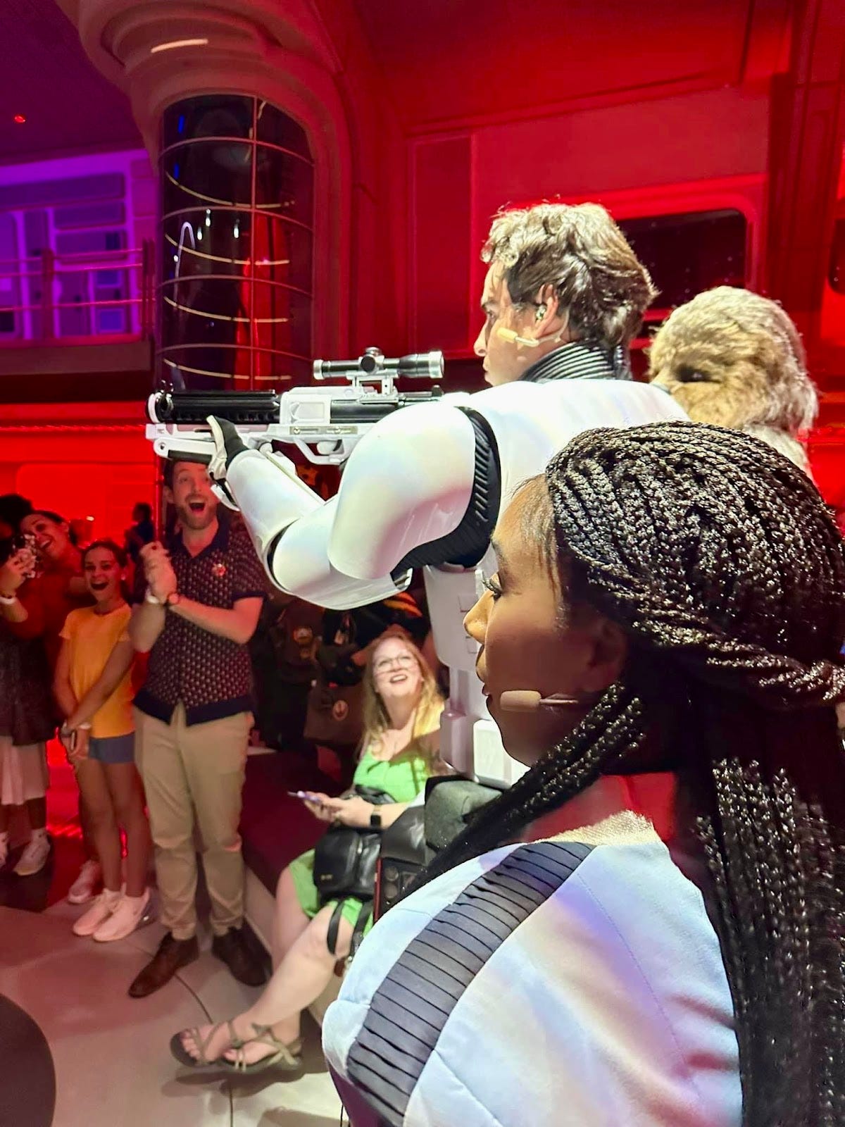 I have never had an experience that bespoke in an immersive show before. With a plot I generated entirely, an actor in a structured performance heard my story, took it seriously, and improvised with me a scene of intense emotional power that pulled in other guests. In Star Wars, no less. I cannot say enough how amazing that moment was. Saja Kyr and Galactic Starcruiser set a new high bar of what I can expect from performances in immersive shows. Everything about Starcruiser was mindblowing, but that personal moment is the one I will never forget.