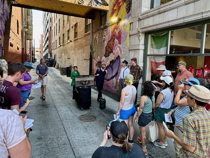 By default, the audience had no agency in the story, because we were witnessing a recounting of real, historical events. Still, the repeated opportunity to engage in these spaces with both the augmented reality and the other spectators in my group was unique. Layer in the raw chaos of the roaming, uncontrolled environment and suddenly, you have brought to life a significant but often overlooked piece of Denver’s history.