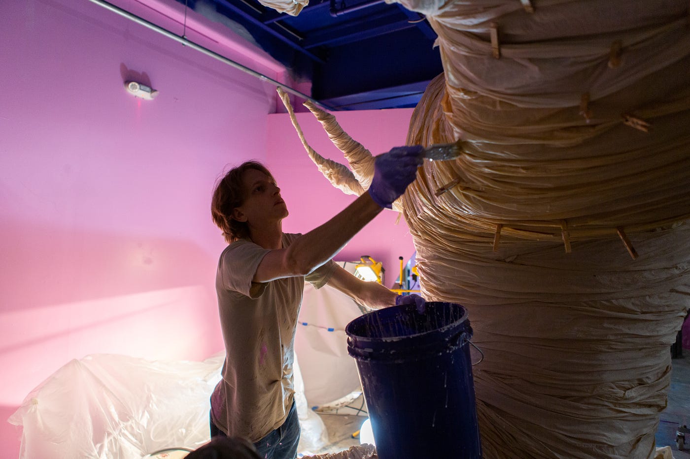 Kelsey Karper (KK): I am Kelsey Karper, one of five co-founders of Factory Obscura. My primary creative practice is mostly focused on collaboration with other artists by providing practical, logistical, and creative support to realize ambitious ideas. Within our collective, I do a lot of work to identify talent and skills within our community, and connect those skills to the needs of our projects. The work that we create is intentionally very collaborative and experimental, which requires a lot of coordination amongst the artist team.