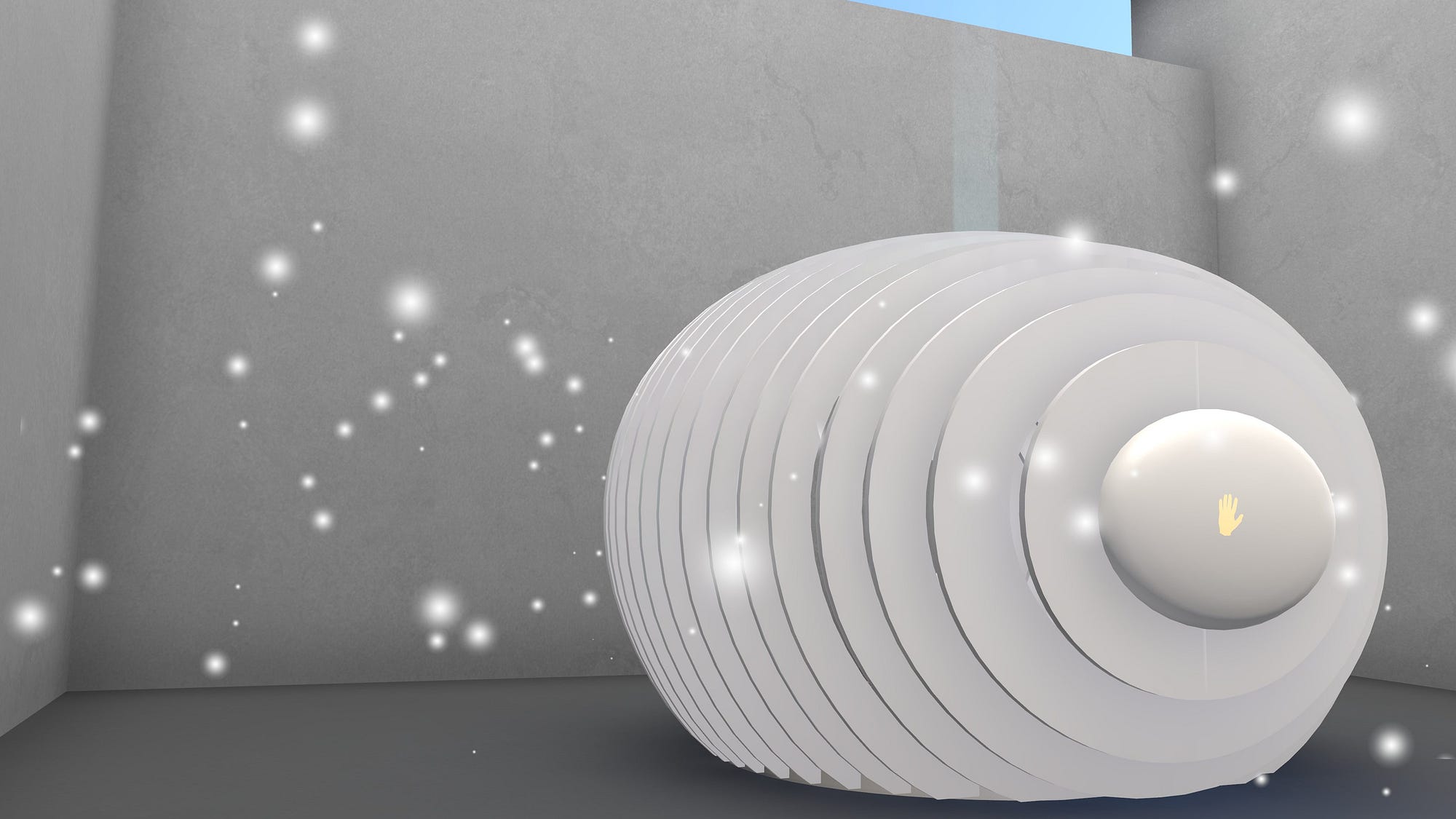 The giant egg-shaped virtual installation for “Fly” by Charlotte Windle Mikkelborg and Amaury La Burthe
