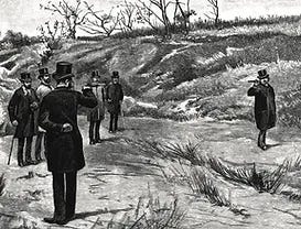 The game takes place in Weehawken Dueling Grounds of New Jersey, the historic site of many elicit duels. Sinking Ship does a good job with the LARP facilitation — the location was symbolically resonant, the facilitator managed the game well, and there were excellent controls for safety and consent. Of course, you can buy the LARP script for $8 and run it yourself, so the price of this experience is a complex question. I don’t doubt that Sinking Ship brings value to consumers and pays its staff fairly. I support that, but I can’t help thinking this price is better suited to beginning LARPers who need the scaffolding of this facilitation over expert players who can do all of that themselves.