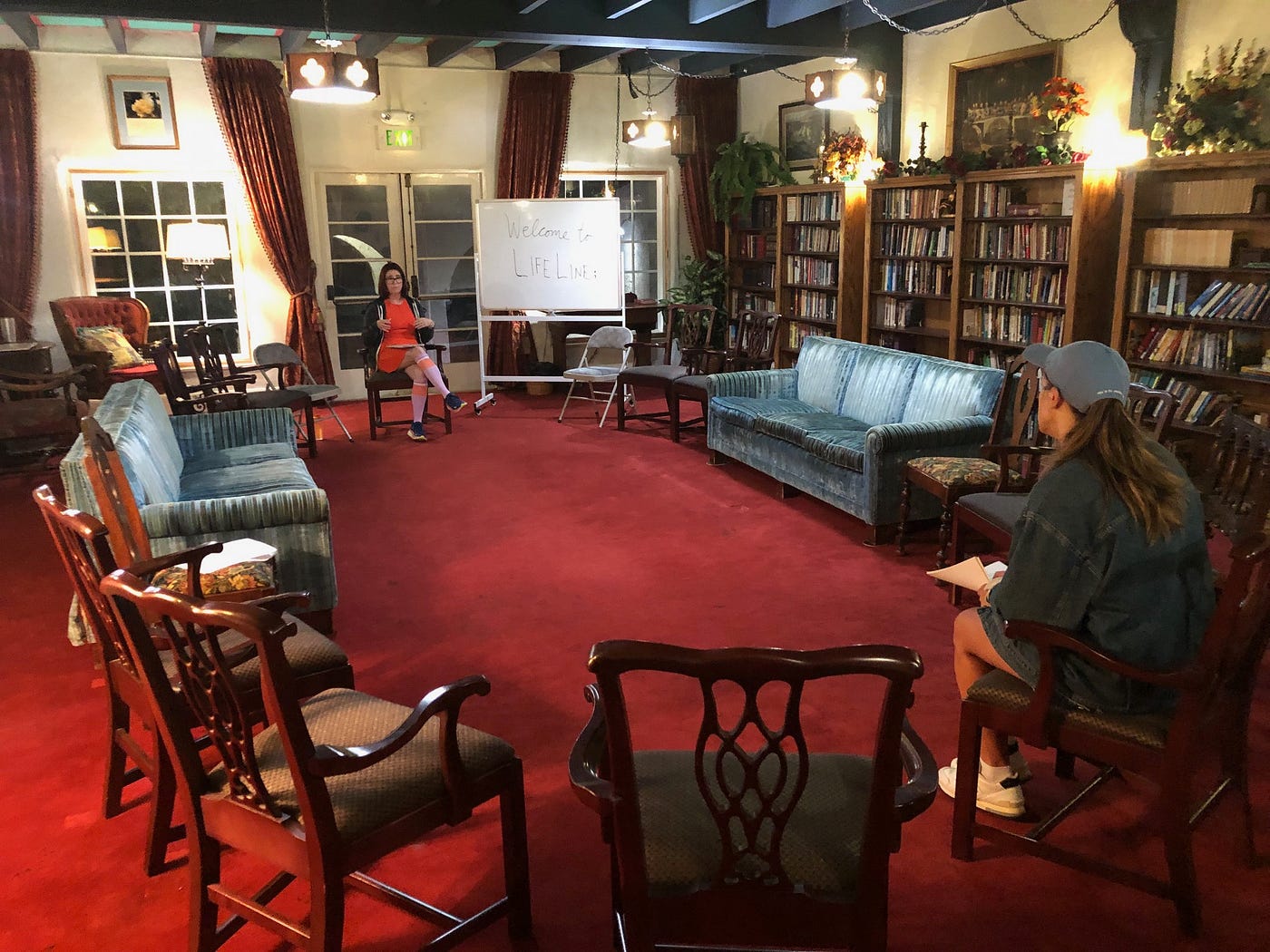 As an immersive advisory, I feel the need to flag an item from the synopsis: “As part of the support group, you can participate as much or as little as you like.” Based on my experience, I don’t believe that is actually the case, but I also don’t feel that is necessarily a bad thing. Life Line is much more an intimate site-specific play in the round than it is a fully interactive experience. Apart from a welcome ice breaker at the top and a couple of very specific moments where single answer responses are solicited, the actors are on a carefully written conversational path that cannot be deviated from.