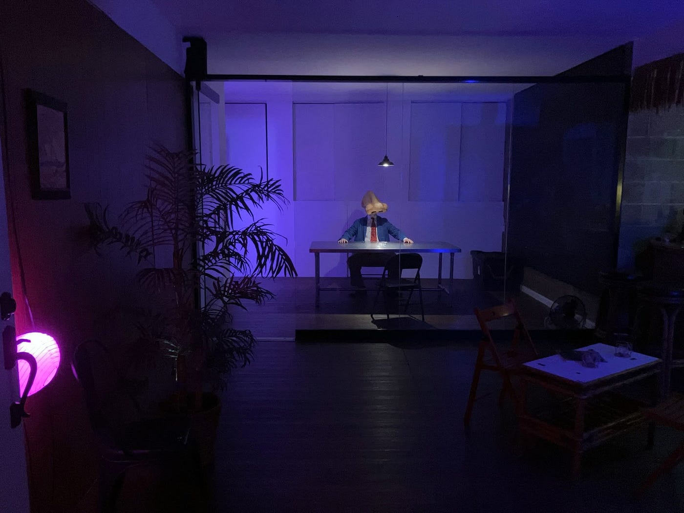 While the production’s incredibly talented cast and clever use of the space set the stage for success, the production relies a bit too heavily on the idea of absurdity for the full potential to be achieved. While the story is definitively absurdist, the production used the audience in a way that felt superficial. And perhaps that is the point, at least in some parts of the piece, considering theatre of the absurd calls for the treatment of the human experience as meaningless. This “meaningless” absurdist style is present in the inclusion of the audience in various moments of the piece — an unprompted bathroom rave, imaginary shots at the bar, non-palm readings, and checks written for nothing all provided a sense of levity and the quirkiness that feels at home in an absurdist piece. However, the audience was also often left waiting with nothing to do during scene changes which felt a bit less intentional.