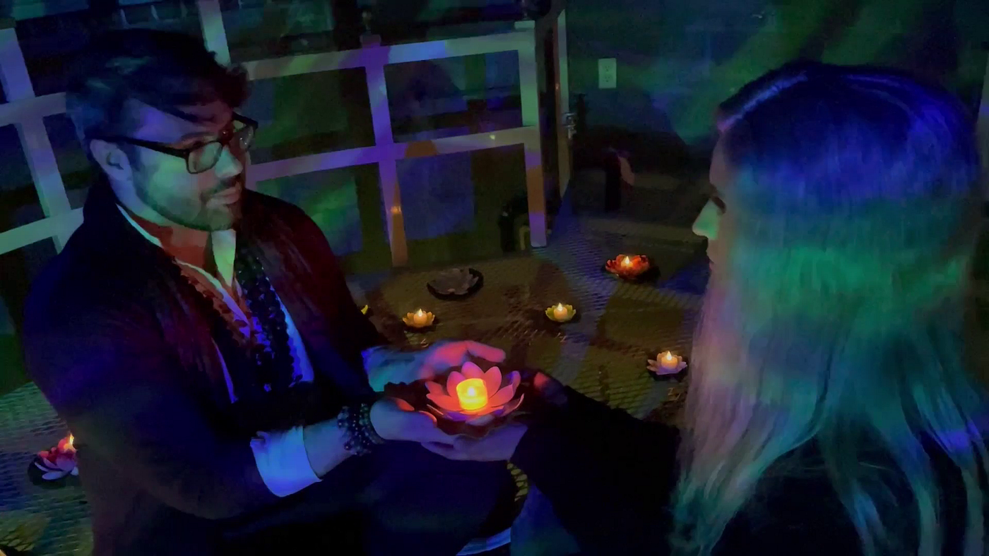 Dreams are shared, and we see through the veil of worlds as we build to an encounter with the all-knowing Archivist. They are exceedingly tall, lighting up the room and carrying a wisdom beyond words. This show is all about the art of saying goodbye. A hard goodbye. A life-changing ending of a friendship. It’s beautiful and painful at the same time. We collectively looked out into the unknown and accept it for all of its possibility, the potential for utter ecstasy as well as bitter agony.