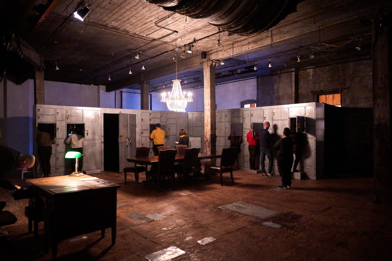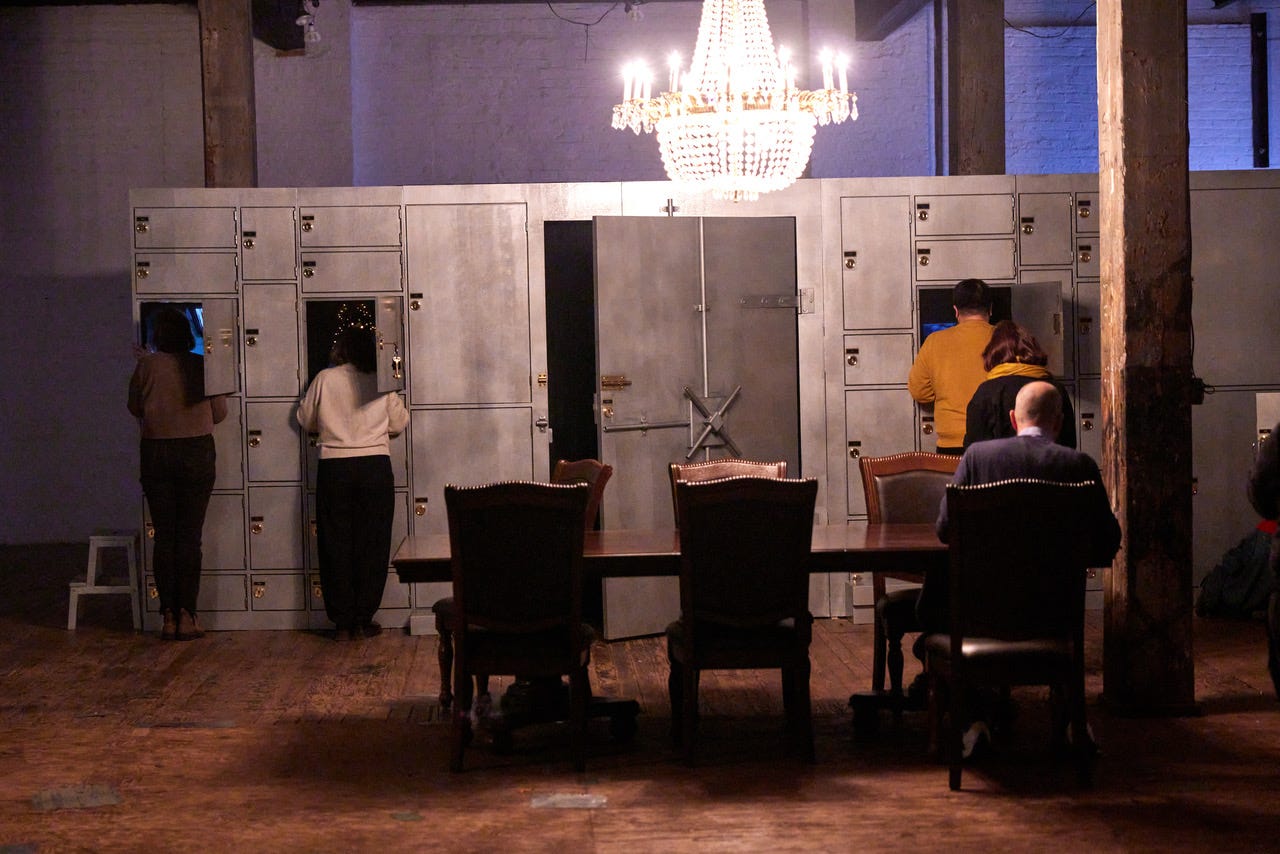 A tenderly built and theatrically ingenious new work. Within The Invisible Dog Arts Center in Brooklyn, creator Tania El Khoury has set up an L-shaped structure of lock boxes. After welcoming us serenely into the space, audience guide Nour Annan explains how the show works. We will each receive a set of 10 keys, each set numbered in a different order. Separately we will go box to box, each tracing El Khoury’s investigation into her family’s history of migration in a different chronology.