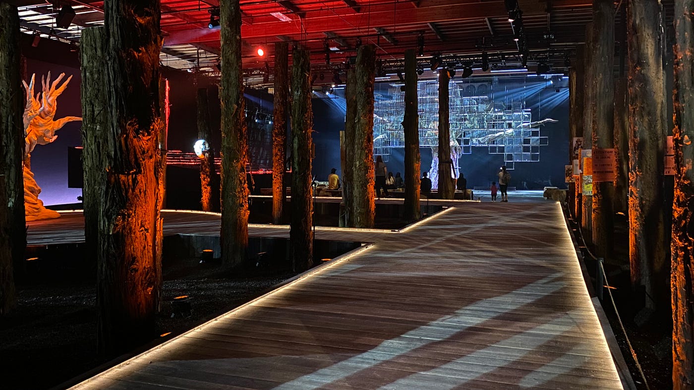 Inhabiting 28,000 square feet within a warehouse, A Forest for the Trees consists of interactive art, including multiple tree “performances.” Participants move through a progression of spaces and installations while retaining freedom of exploration and “agency of imagination,” as described by artist Glenn Kaino, the production’s creator and steward. It’s a fusion of culture, science, and advocacy by way of embodied, immersive storytelling.