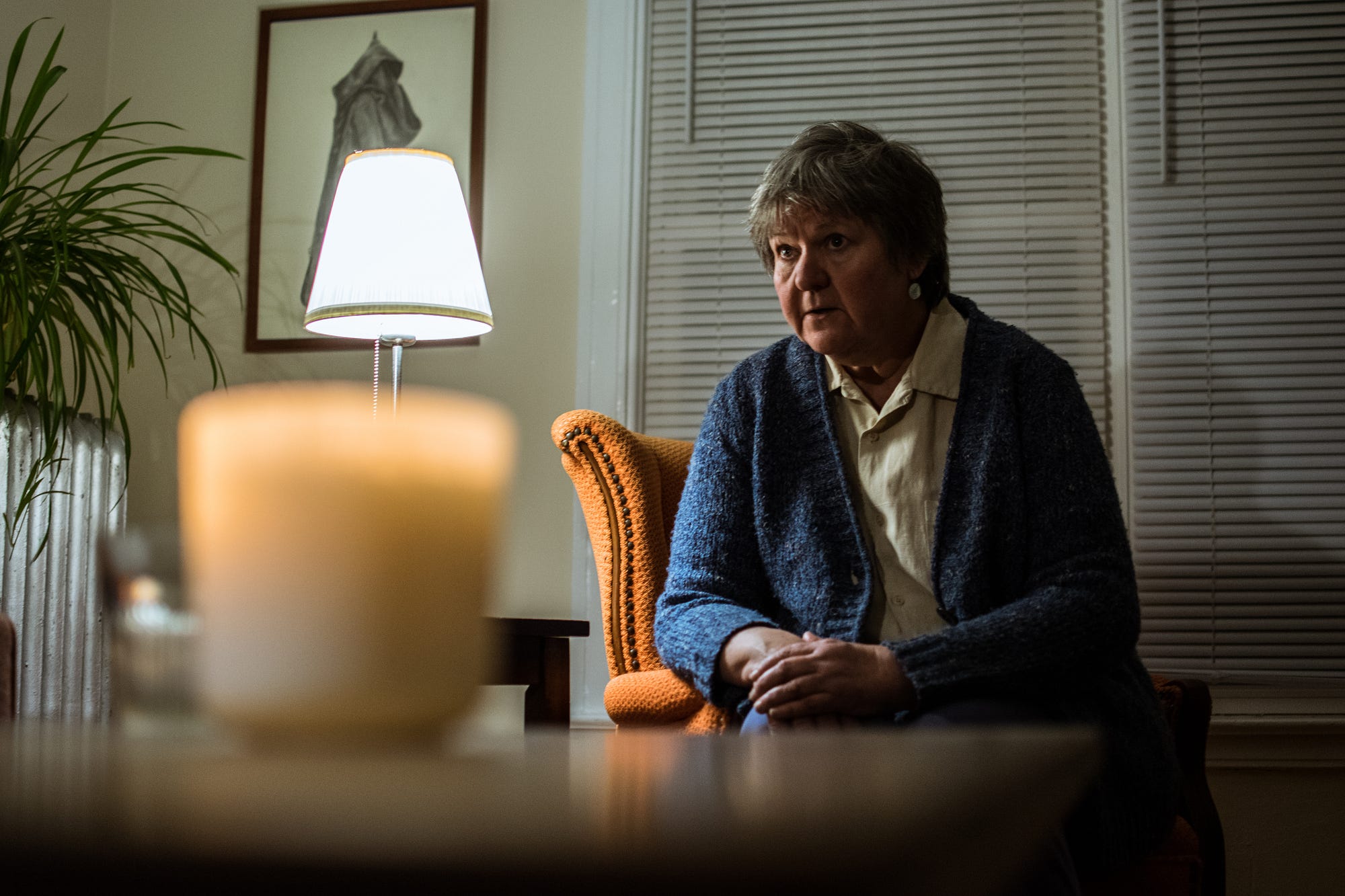 The entirety of Home Invasion’s action takes place in the living room. I try but find it’s a stretch to even consider myself on a “dark ride” when I feel as if I’m going nowhere. Other than the non-traditional staging of putting the play on in someone’s living room, there is little else to be considered “immersive,” so I sit in my chair, staring straight ahead quietly the entire time. Yet, I must give credit where it’s due: the cast and crew of Home Invasion used the living room effectively, rivaling any lighting and staging found in a Chicago black box theatre space.