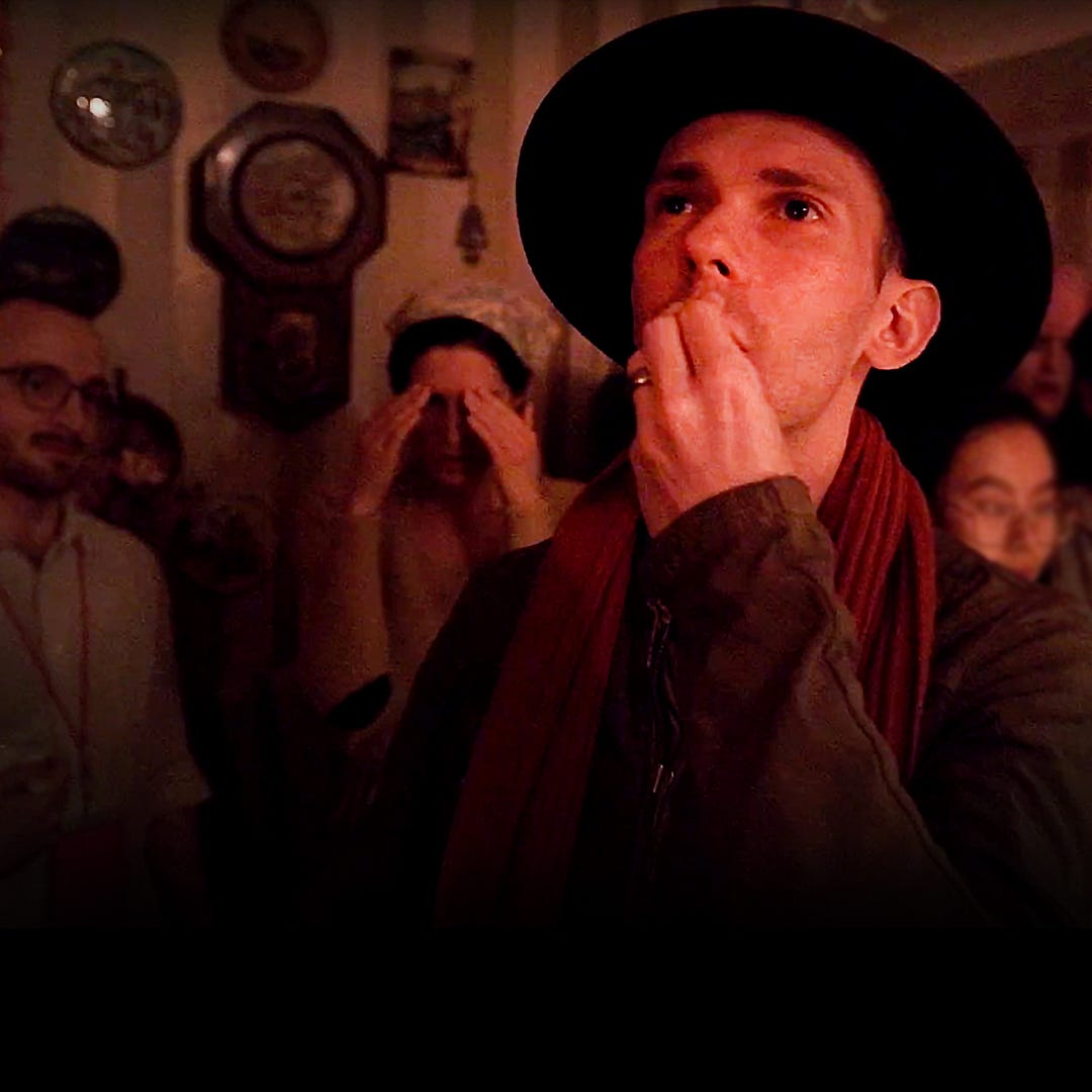 In a relatively short amount of time (just over an hour) Inheritance seeks to deal with deep rooted issues of identity, which is quite the rabbit hole to fall down. Some topics are covered better than others, through separate scenes that play out as the group splits up and the “dark ride” portion of the performance begins. We receive a frenzied lecture on the history of the Jewish people, an explanation of “our” culture, and where “our guilt” comes from. As someone who is not Jewish, it felt uncomfortable to laugh along with some of the jokes here, but it was a fascinating insight into what can be passed down through generations, and what effect that can have on us today.