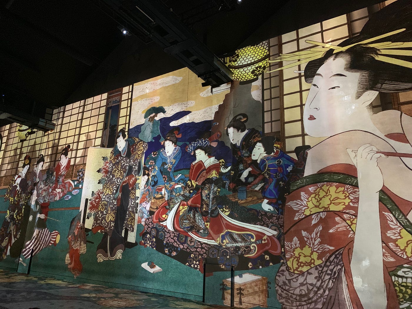 There are two slightly out of place additions to the space, which seem to be there purely for the Millennial generation. An infinity room, full of floor-to-ceiling mirrors giving the illusion of being surrounded by copies of yourself and of the artwork being projected, feels like an unnecessary addition. Also, in the back corner, there is a photo booth, for a chance to get that much-needed picture of oneself. Both extras felt out of place, and during our visit, they both seemed mostly empty. With the amazing projections going on all around, I’m not sure why the curators felt the need to include these.