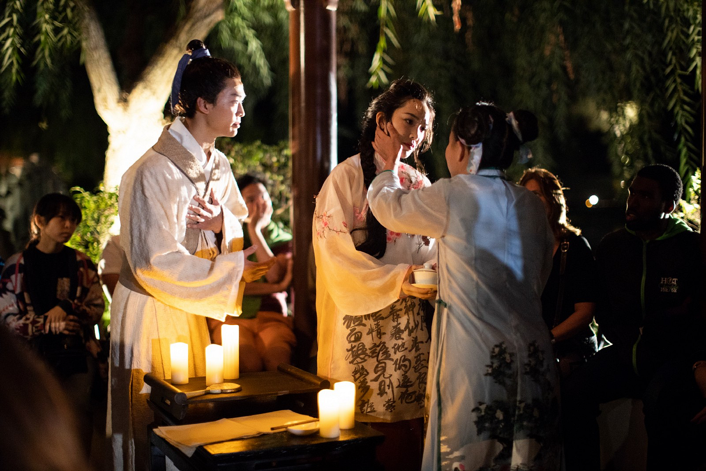 Writer/director Stan Lai, who the BBC has called “the best Chinese language playwright and director in the world,” has crafted a masterwork of play structure that melds the history of the Huntington, techniques from Chinese opera, the stunning landscape of the titular Chinese Garden, and a twin interleaved stories based on the 16th-Century romantic tragicomedy The Peony Pavilion. “Masterwork” gets bandied about somewhat without care in the Southland’s theatrical landscape, but Lai’s alchemy blends these elements of contrasting tones and techniques into a singular theatrical alloy, creating an experience that could only work to its fullest in the garden at night.