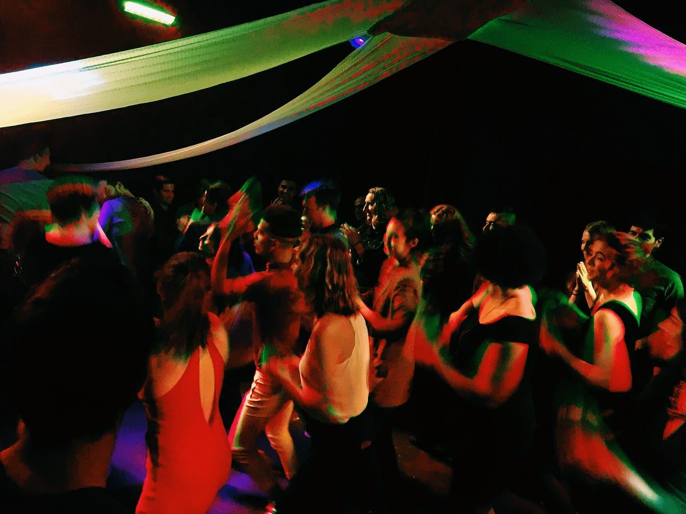 Even though the audience cannot change the course of the narrative in Alien Nation, the show is fully committed to keeping the audience involved throughout the performance. At times the audience is asked to take part in a scene, as the venue transforms into an impromptu subway car with the aid of two curtain rails. Perhaps someone is plucked out to be an Uber driver as the plot thickens in the backseat behind them. At one point, the entire audience find themselves in the middle of a wedding reception, in the middle of a field, dancing to Whitney Houston.