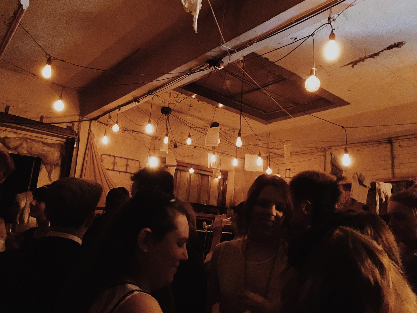 Surrounded by a flock of well-dressed ladies and gentlemen, we find ourselves in a well-lit speakeasy, with lines of bottles are the wall. A dapper-looking gentleman approaches and asks the person next to me whether they have any words of advice, any sayings that their family has. He asks another patron, and seems to take their responses on board. Suddenly, he is standing on top of a table, and addresses the crowd.
