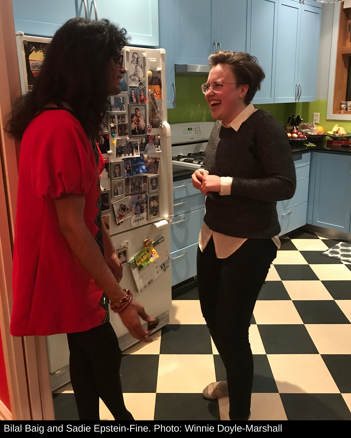 Sadie Epstein-Fine (SEF): I am a second generation queer artist and activist. I was born and raised in Toronto by my two Jewish, lesbian, feminist moms. As a theatre artist I have trained in directing, playwriting, dance, devised theatre, and stage combat and my work is a fusion of that training. I am also a theatre administrator and educator. I have given workshops, directed plays and taught classes in several elementary and high schools over the past 10 years. I currently work at Nightwood Theatre where I am training to become a future artistic leader.