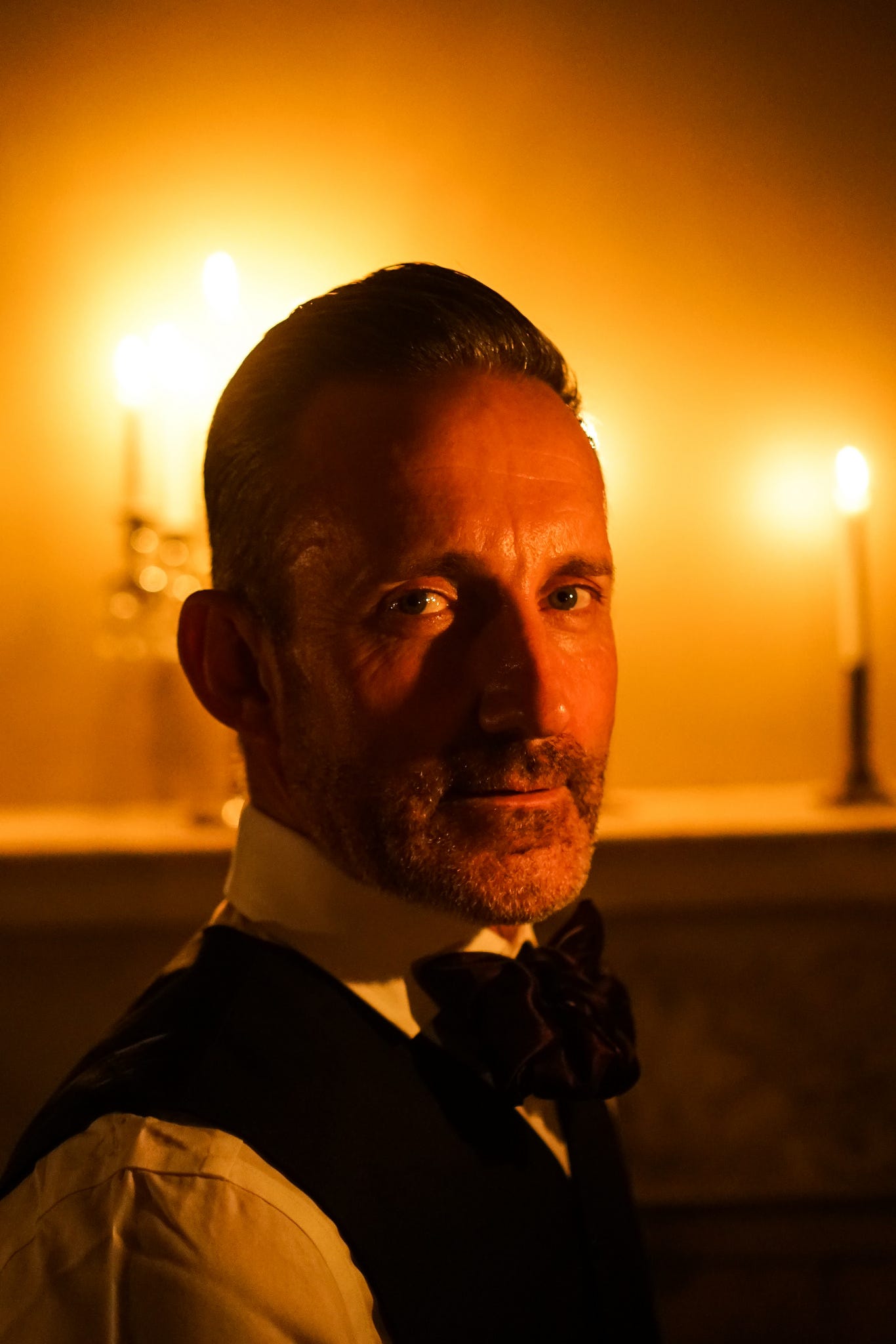 However, in this intimate, up-close setting, there is also a certain magic in seeing theatre tricks executed seamlessly. The toolkit of many an off-off-Broadway production is used to great effect here. The vast majority of the lighting is done via live flame and the occasional flashlight, held by a member of the ensemble to maximize the creepiness of the shadows the beam casts. Quick, silent costume changes — of which there are many — are done in the dark corners of the small room, mere feet away from the audience, as the main action continues. And as many resource-strapped theatre-makers have discovered in the past, there is a lot to be said about leaving the empty spaces to the audience’s imagination, enhanced by darkness and the right sound effects and music, particularly when our imaginations are left to run wild in an old, historic parlor room.