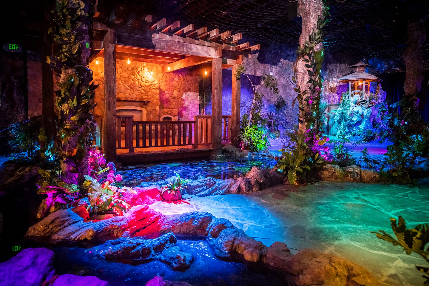 Stepping into the large, 20,000 square-foot themed space, the hustle of the city streets immediately seems distant. The space is built to be welcoming. The entrance is beautifully adorned with a mural, commissioned by New York-based street artist WERC and brought to life with projection-mapping by TICO. Lobby exhibits emphasize the communal, and a cafe can be found in the entrance serving (non-alcoholic) herbal elixirs and raw snacks to the public, including those without tickets to the main exhibition. The “dragon tunnel” lobby features a series of projections, some of which are user triggered, as well as several socially-oriented exhibits, such as an infinity mirror box and “Galaxy Sphere.”