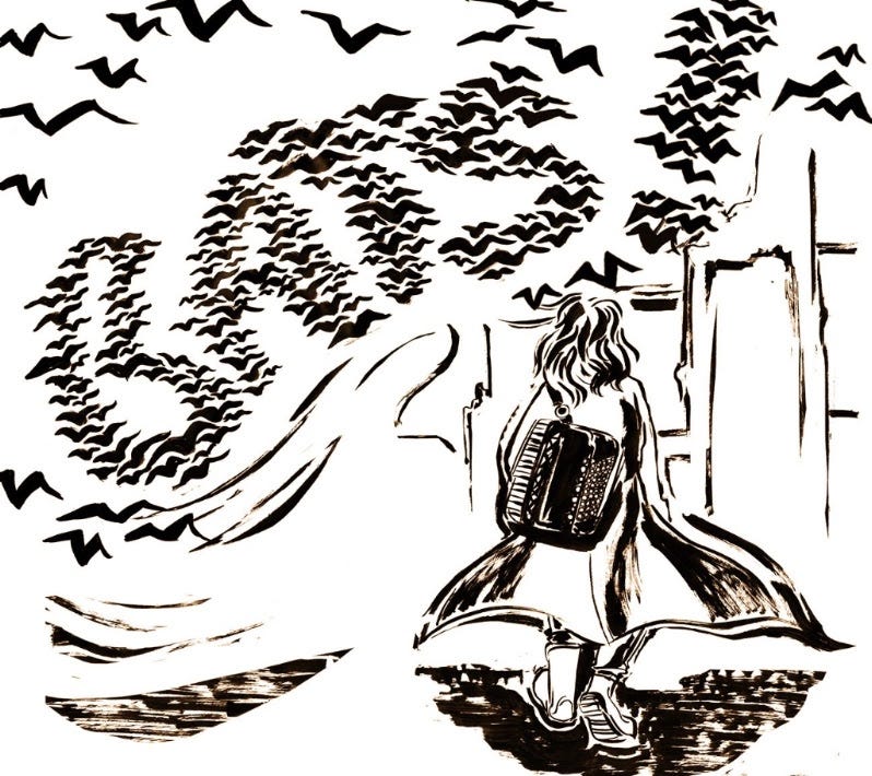 BATS! is a mixed media, interactive contemplation on the nature of fear and madness. This new solo work is conceived and performed by Michele Minnick in collaboration with Submersive Productions (H.T. Darling’s Incredible Musaeum, The Mesmeric Relevations! of Edgar Allen Poe). Expect conversation, original illustrations by Baltimore artist Chelsea Demitras, and accordion,as this show explores the lines between fact and fiction, past and present. BATS! connects an extra-ordinary personal narrative to a larger story: the all too ordinary madness of American culture.