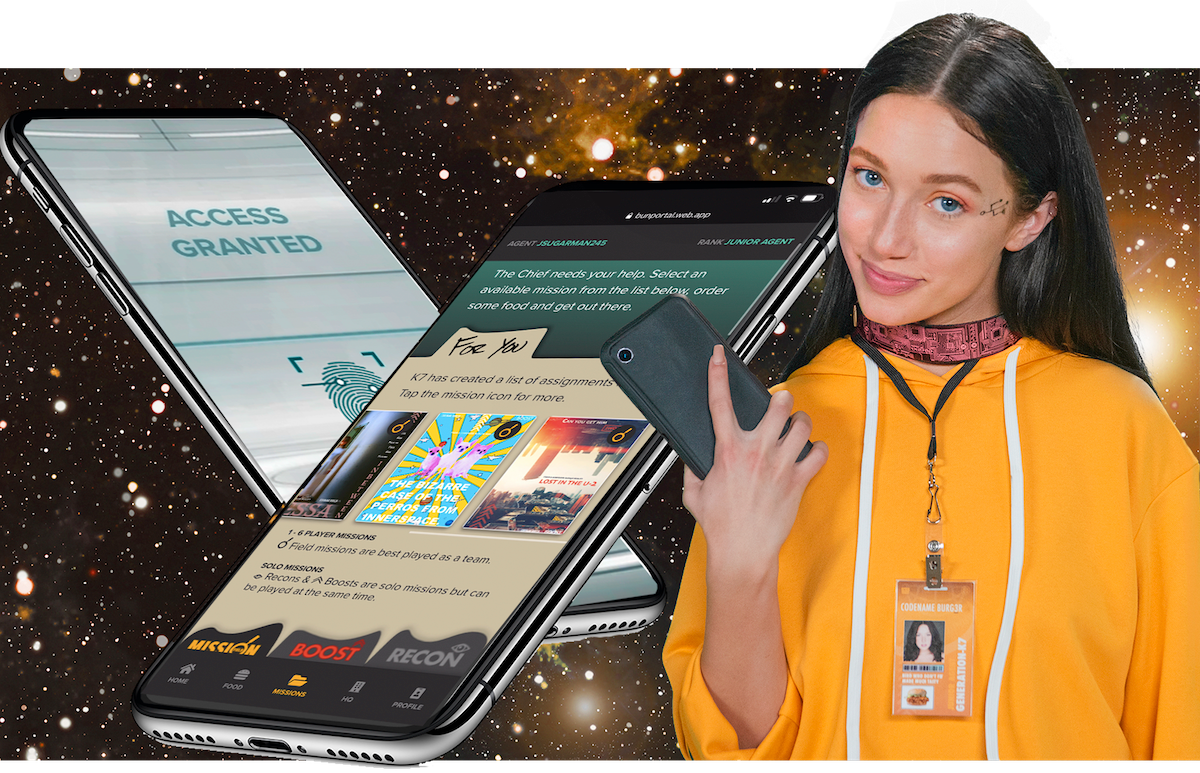 Codename Burger (stylized Codename Burg3r) brings together some of the best minds in the L.A. food delivery + puzzle scene that arose amid the pandemic, including Josh Sugarman (Vampire.Pizza), Ariel Rubin and Julianna Moreno Patel (Escape Room in a Box), and Marlee Delia and Anna Mavromati (Shine On Collective), and the team at Interwoven Immersive (Cara Mandel, Rachel Walker, Amanda Schuckman, Brett Kuehner) who created the mission we review here. They’ve collaborated on a series of interactive missions that combine tech and physical puzzles inside a light-hearted sci-fi universe.