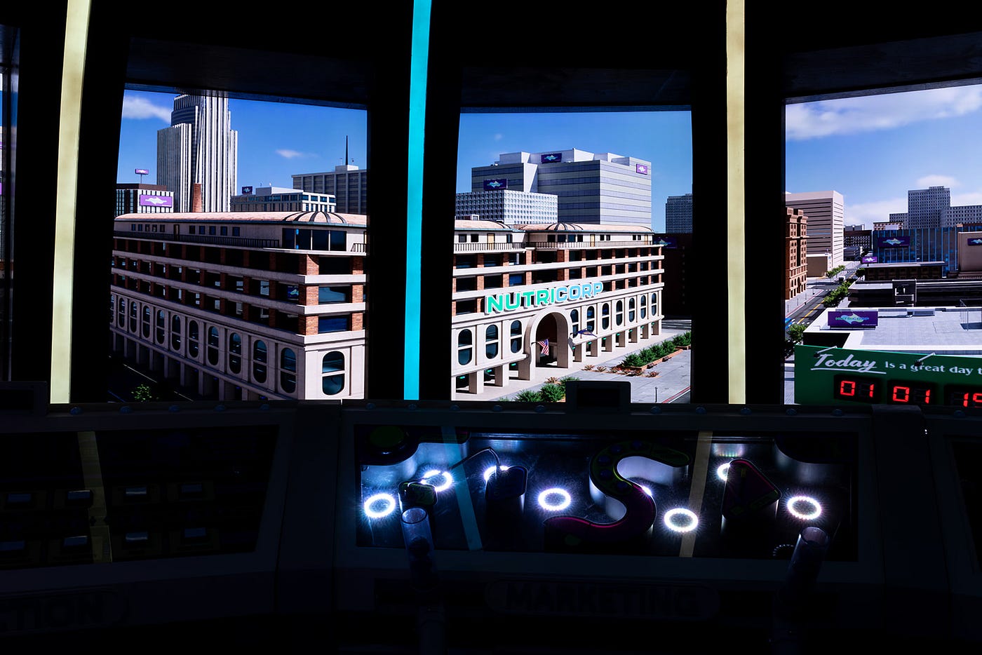 As you progress through the experience, you’ll move through the years (each room represents a decade of time) and complete tasks to earn money or solve puzzles to dive deeper into the story of Nutricorp. In between decades, you’ll get new story beats and decide how your avatar reacts to what’s going on. Based on your success at completing tasks and solving puzzles and choices you make about your avatar’s life, your story will unfold over 90 or so minutes.
