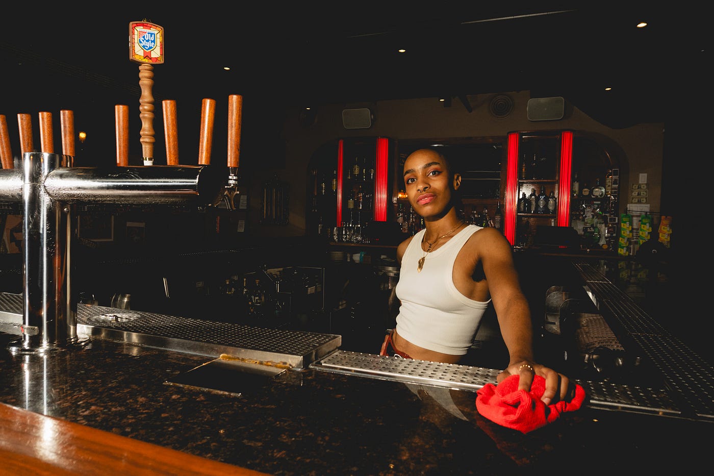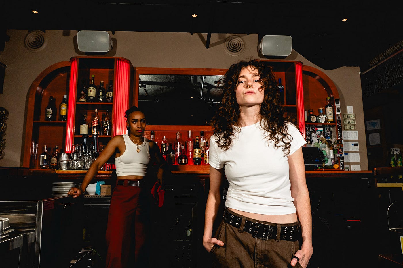 Whitney LaMora: CATACOMBS is an original play written by Katherine Gwynn and devised specifically for Dorothy, Chicago’s only Lesbian Bar owned by myself and my wife, Zoe Schor. CATACOMBS follows Ari, a bartender left to open the bar by herself who hires a last minute service worker who quickly arrives — named Beau. After introductions, a little innocent flirting and the beginning of a night working together, Beau reveals they aren’t there from the service app. Instead, they know Ari, or sort of know Ari, or, really, has known her for many, many lifetimes.