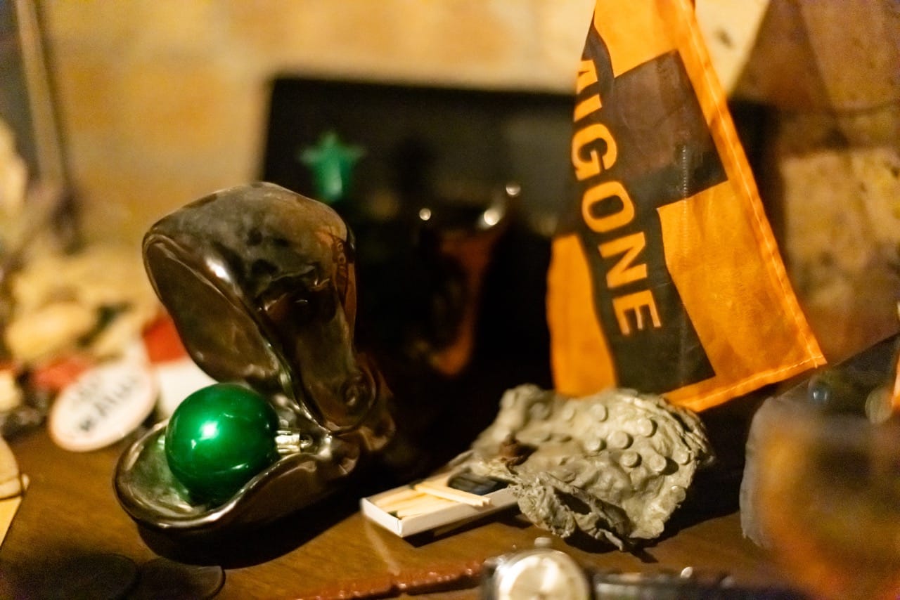 Upon entering, guests pass through a hallway of moving boxes as an eerie, unfamiliar song fills the air and the scent of aged wood lingers. The walls are covered in ephemera – notes, trinkets, and artifacts that invite quiet discovery.