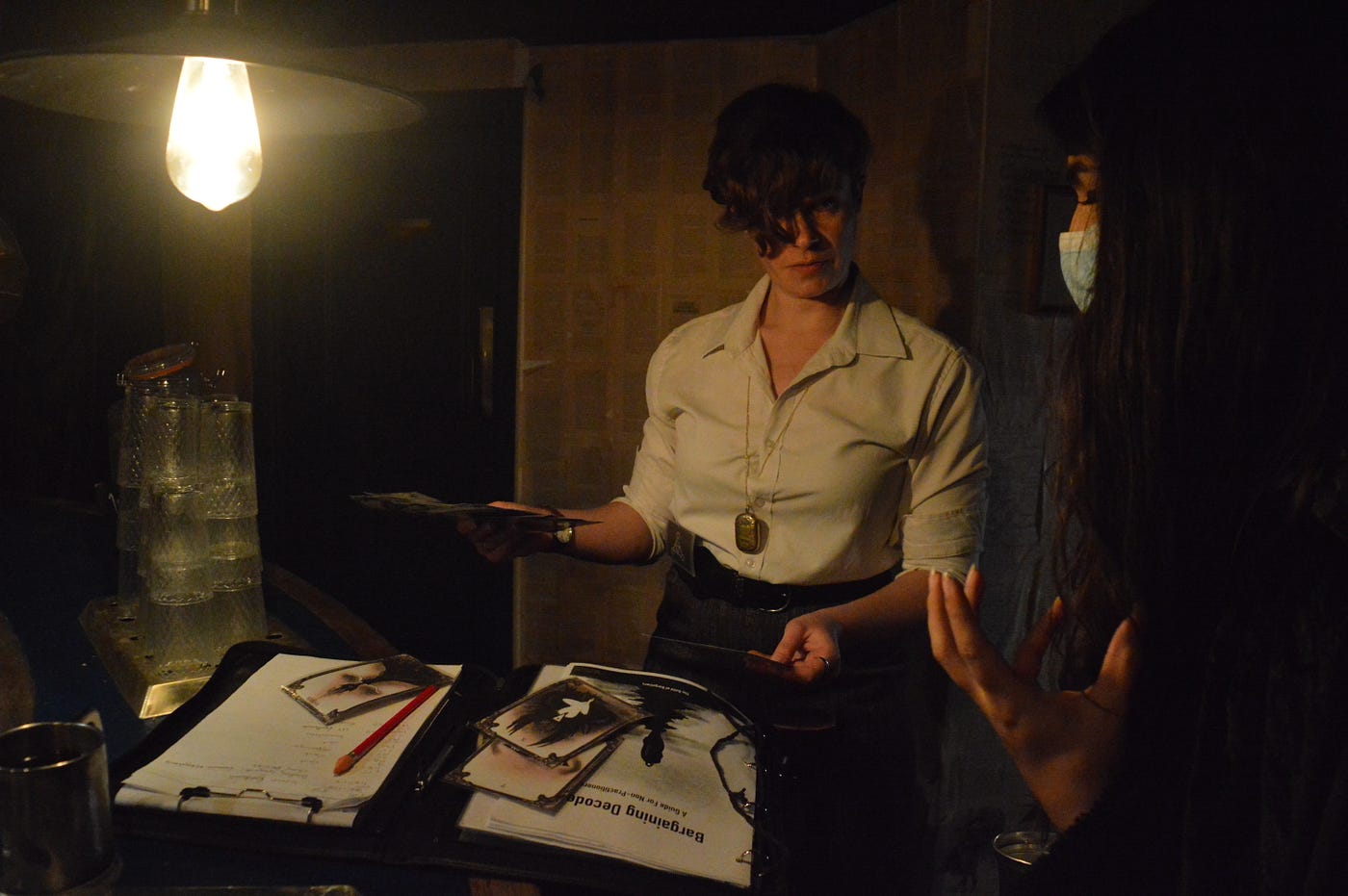 The other big excitement is that all three shows are set in the same ongoing world. Any individual show offers a distinctly different, standalone night out — come to Come Bargain for ritual, Come Worship for comedy, or Come Murder for dark tragedy.