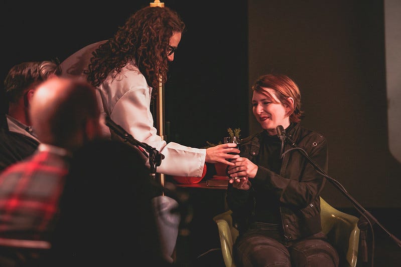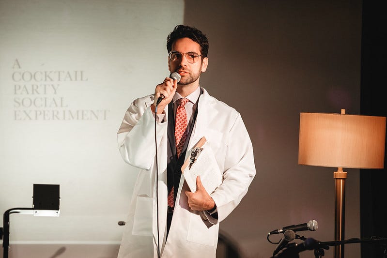 The rest of the description is accurate — it is a mix of game night, story slam, and alcohol-fueled voyeurism — and it’s an incredibly lovely combination. The conversations created by the questions are vulnerable, honest, and transfixing to listen to. I admire and support the quest to provide more opportunities for meaningful, human connection. But watching others connect is not “connection,” and leaves those hoping to participate, and form connections of their own, disappointed. I think the hypothesis of A Cocktail Party Social Experiment is correct. Wil Petre has indeed created an analog experience that allows a group of strangers to get to know each other in a deeper, more meaningful way. We all need more of that in our lives, and participating in experiences like this one is one way to do so. But until the barrier between audience and participant is broken down, the opportunity for connection in A Cocktail Party Social Experiment feels too much like it depends on chance.