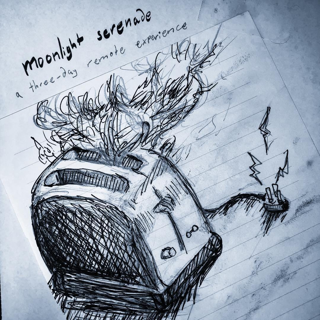 EN: This experience transpires entirely by way of phone calls, text messages, emails, etc. It is live, wholly interactive theatre, personalized to each individual participant and accessible to anyone with a text-enabled mobile phone. Our previous works have been referred to as “sentient radio dramas” — a term that I believe rather aptly describes moonlight serenade as well. Much like a traditional radio drama, our emphasis is always on the story, though a “story” is as much about the narrative as it is the assemblage of small and indescribable moments along the way.