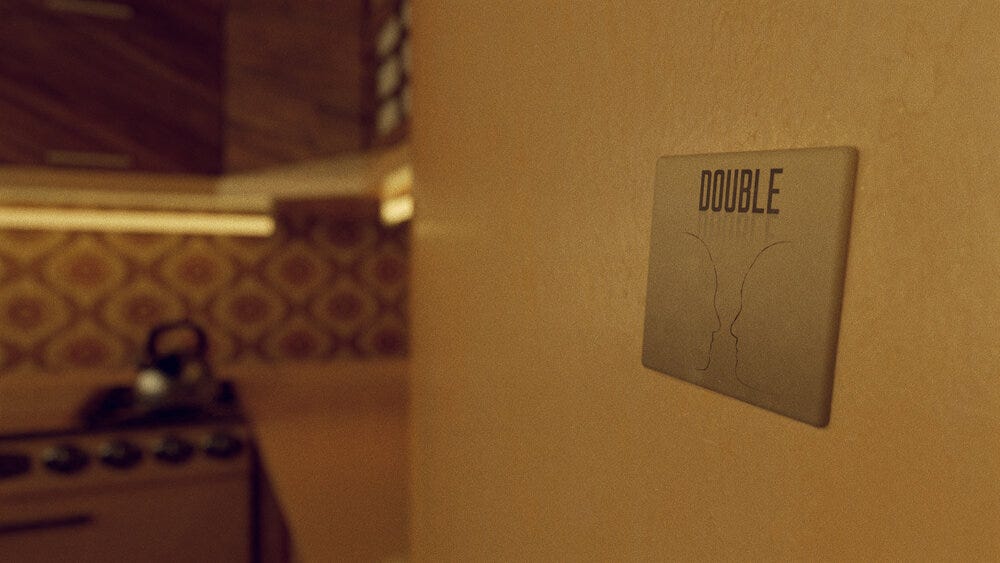 For the most part, we are confined to the same, limited environment. It feels like we’ve been abandoned in a scientific experiment akin to an episode of Black Mirror; we’re perfectly primed for DOUBLE to level up on this shared moment, given our memory’s fragile state, our eviscerated emotions, and current hallucinatory conditions. Yet for all that it does right DOUBLE misses an opportunity to invert our sense of reality by torquing our trust in the material world: to look around, try to remember what was true, and then feel the warm rush of dread, the thick static of déjà vu, and consider the connotations.