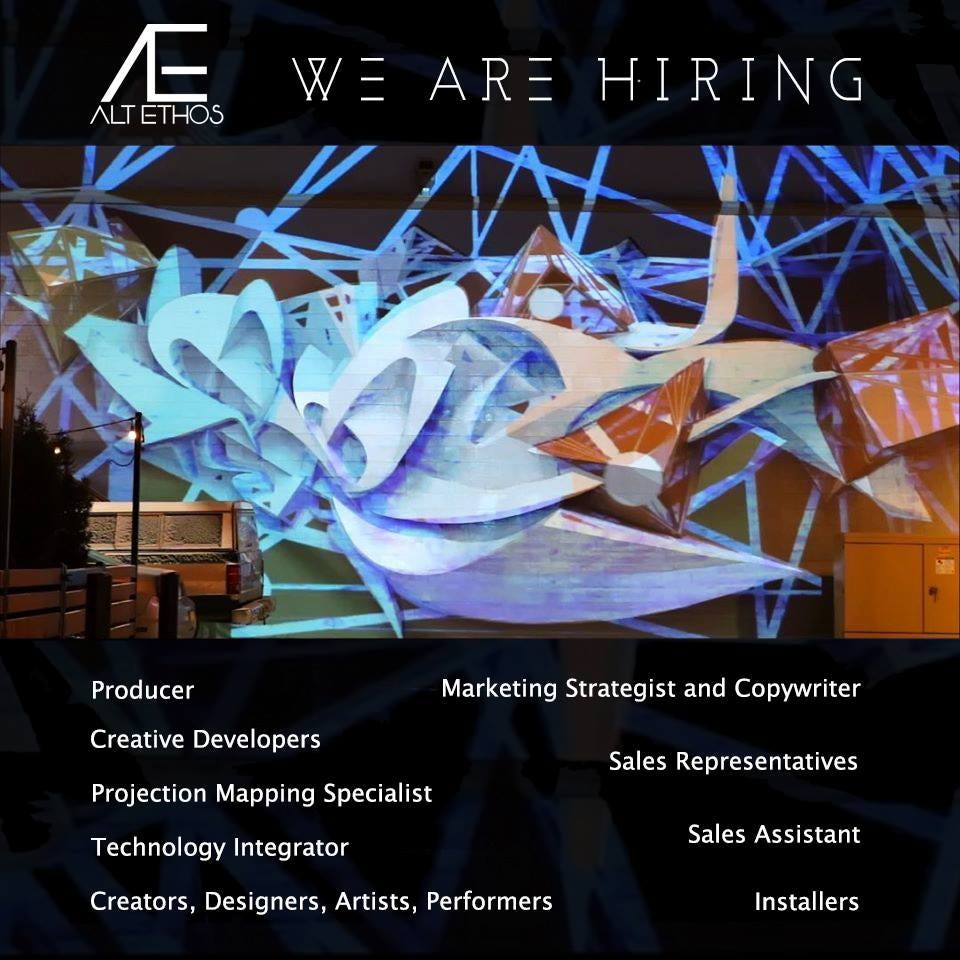 Alt Ethos is not just looking for talent, we are seeking like-minded dedicated creators who see the possibility of making a difference through connections and engagement using creative technology. At Alt Ethos, it is our passion and curiosity that binds us. We are creating the public spaces of the future, envisioning immersive entertainment, and reimagining event design. Alt Ethos is looking for those that will help us make our way into the world market. Alt Ethos is an equal opportunity employer.