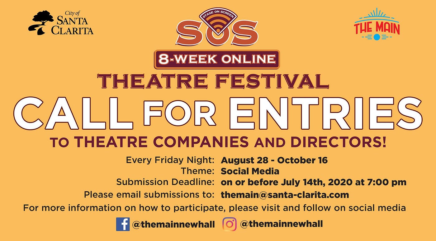 The MAIN in Santa Clarita is seeking entries for its upcoming 8-week online theatre festival that will feature plays within the theme of Social Media. Theatre companies and individuals from different cities, states, and countries are encouraged to submit entries, there are no restrictions in location.