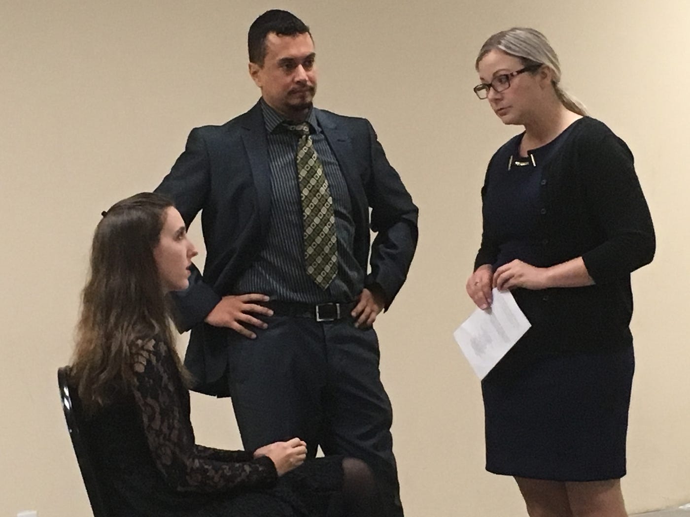 During the bulk of the show the audience is forced to traverse that awkward tightrope of asking probing questions without causing confrontation — there is plenty of confrontation to be found, in part from hospital attorney Oliver West (played smarmilly en pointe by Perez), and wake latecomer Charles Nixon (portrayed with simultaneous sympathy and brazen hat-asserie by Zachary Johnson-Dunlop), husband to a former patient of the late Dr. Polidori.