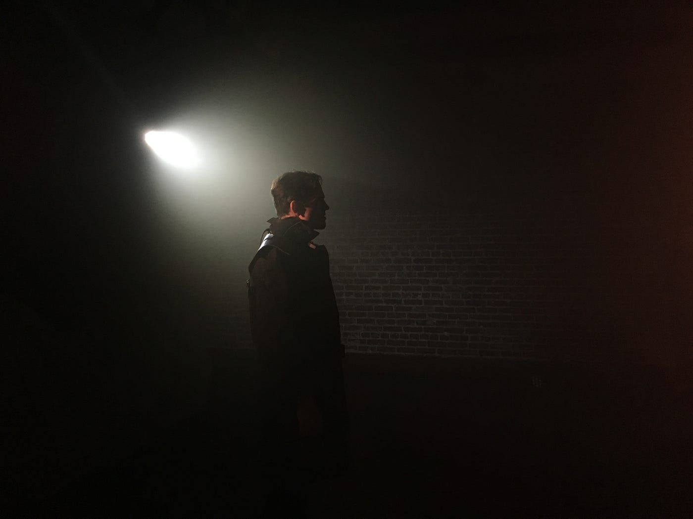 I’m broken from my trance by a murmur coming from the gathering crowd — I’ve momentarily forgotten that I’m not just at a house party. An awkward figure, clutching a dark jumble of plastic — a mask — pushes through the crowd, opens a door, and exits the party.