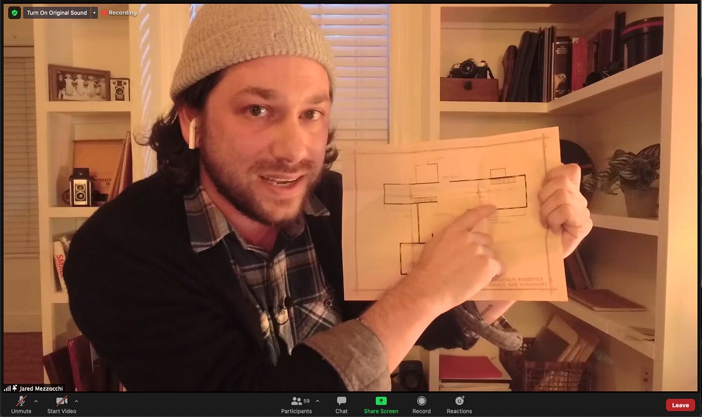 What Mezzocchi is about to tell us is a true story that happened to his family before he was born. In the 80’s, his parents moved into a mansion that was over 200 years old in Enfield, New Hampshire, with their three little kids. What seemed like a great bargain for a large property ended up costing the family much more in psychological damage. Mezzocchi’s brother, eight at the time of the move, was scared for life by the horrifying events that unfolded at the house during the short time the Mezzocchis occupied it. Wanting to get to the bottom of it, and hoping to heal the scars of the past, Jared decided to investigate the history of the house and its original dwellers, the Johnson family.