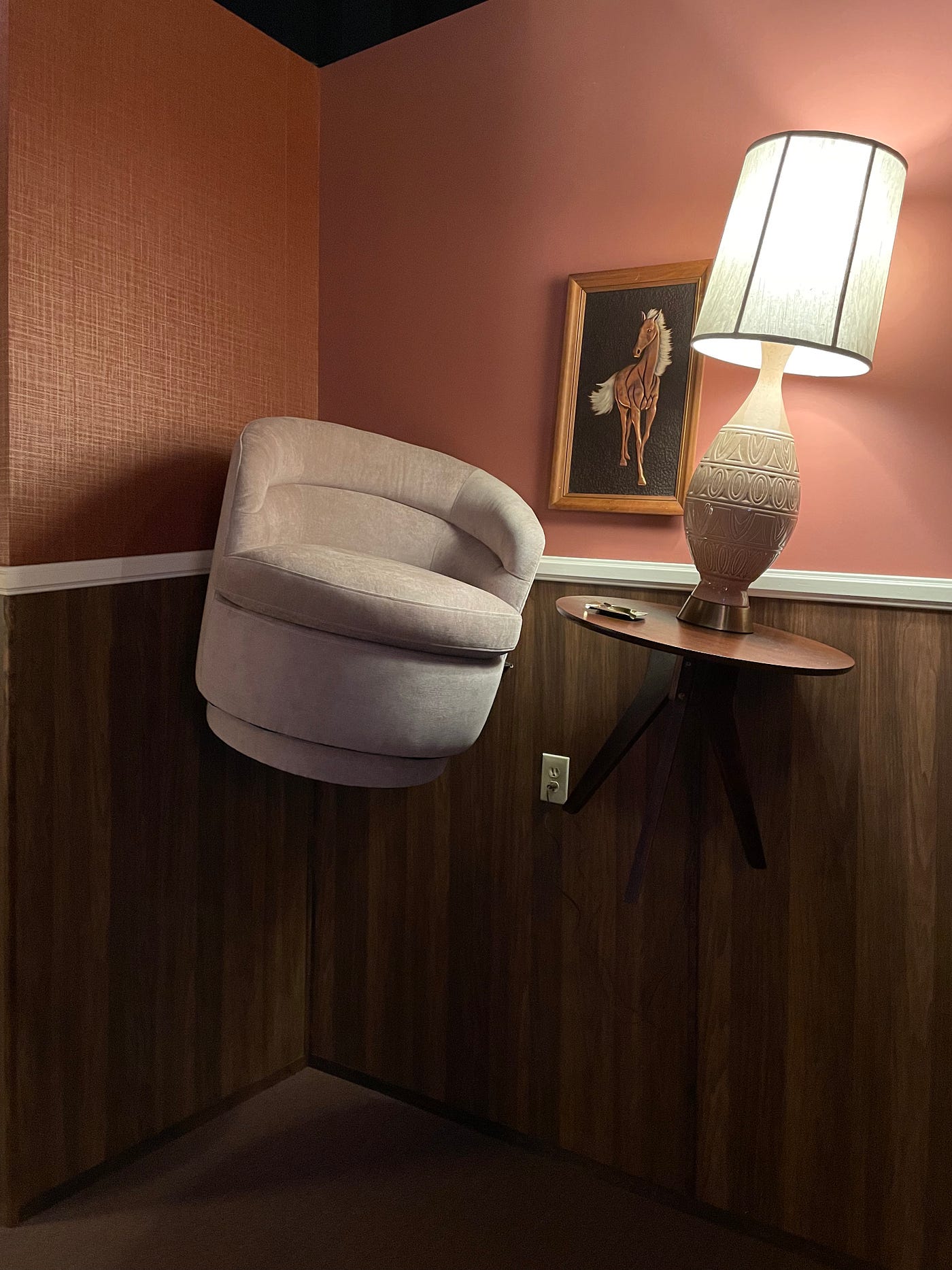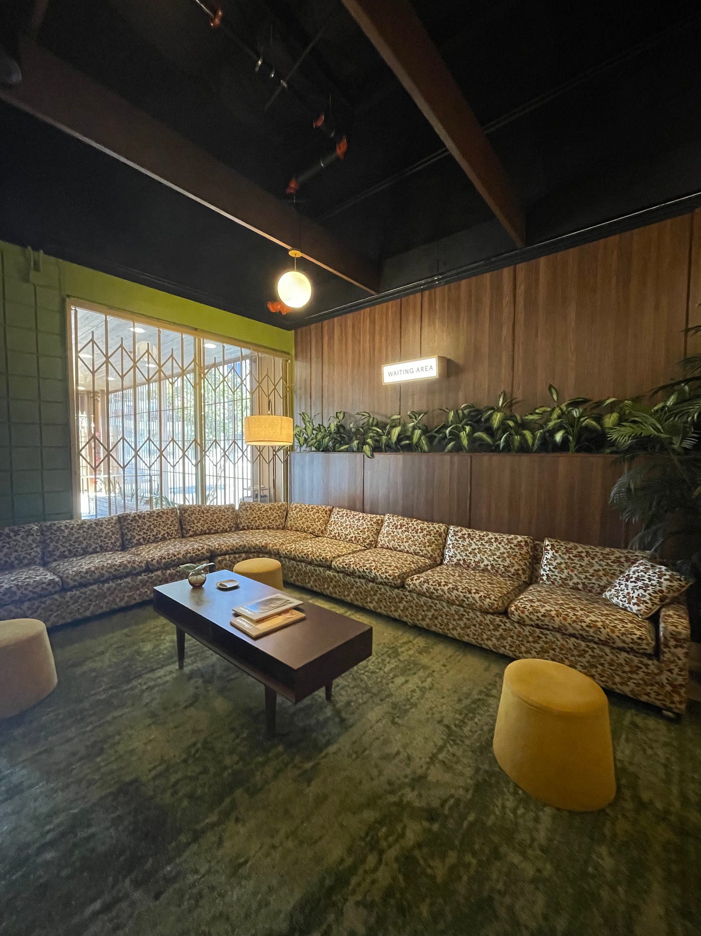 Theme-ing starts from the outside, with the Motel sign and colors evoking a mid-century modern aesthetic that carries into the lobby. Just where and when you are is there from the jump. Unlike a selfie palace, or even Meow Wolf’s original House of Eternal Return attraction, the theming stays front and center in the “check-in” experience. In the waiting room I’m told that the couch was originally owned by Neil Armstrong, and then am quickly told not to Google that. There’s more than a few things one probably shouldn’t Google during one’s trip through Elsewhere, as suspension of disbelief is a currency of the realm.