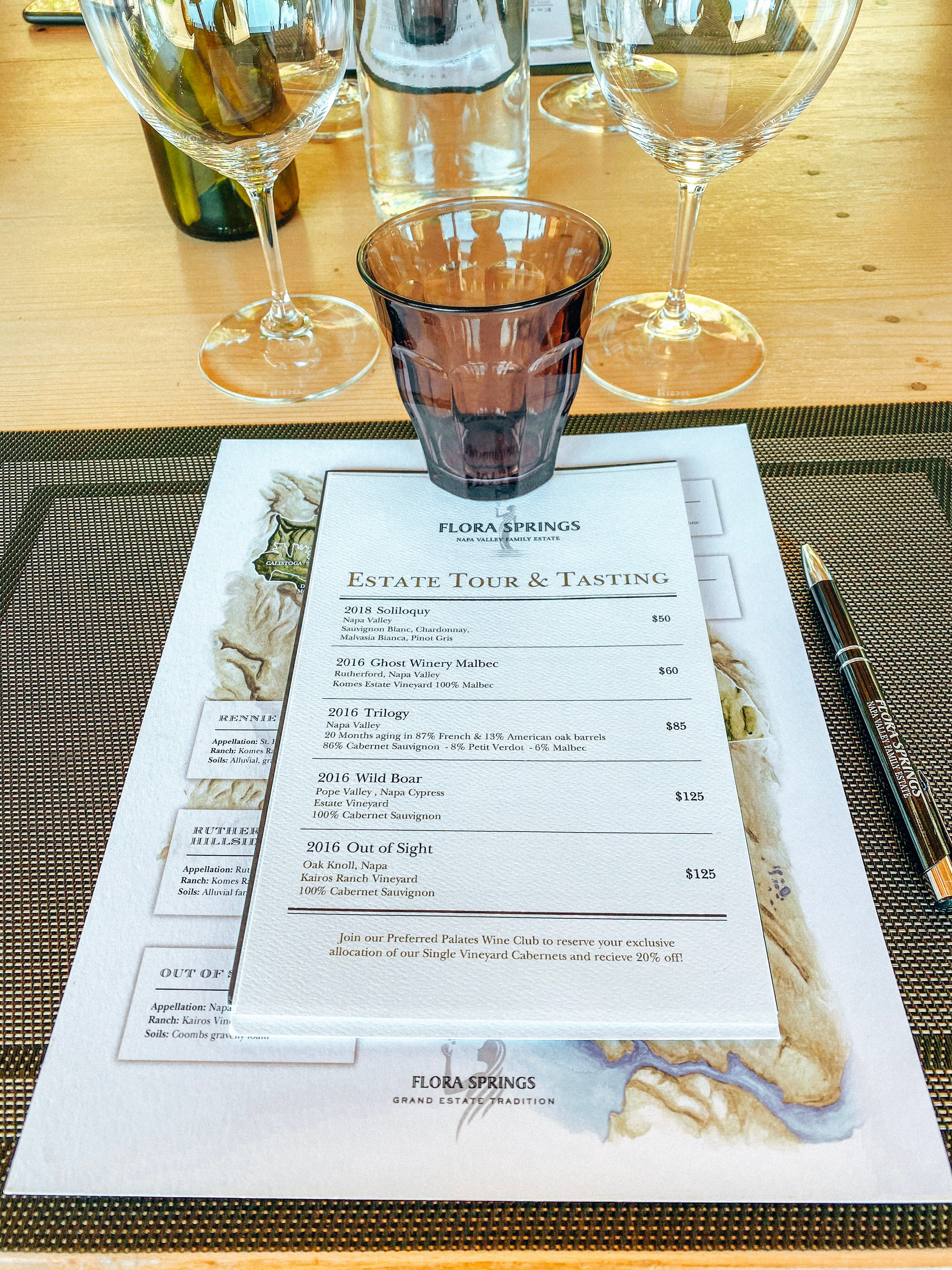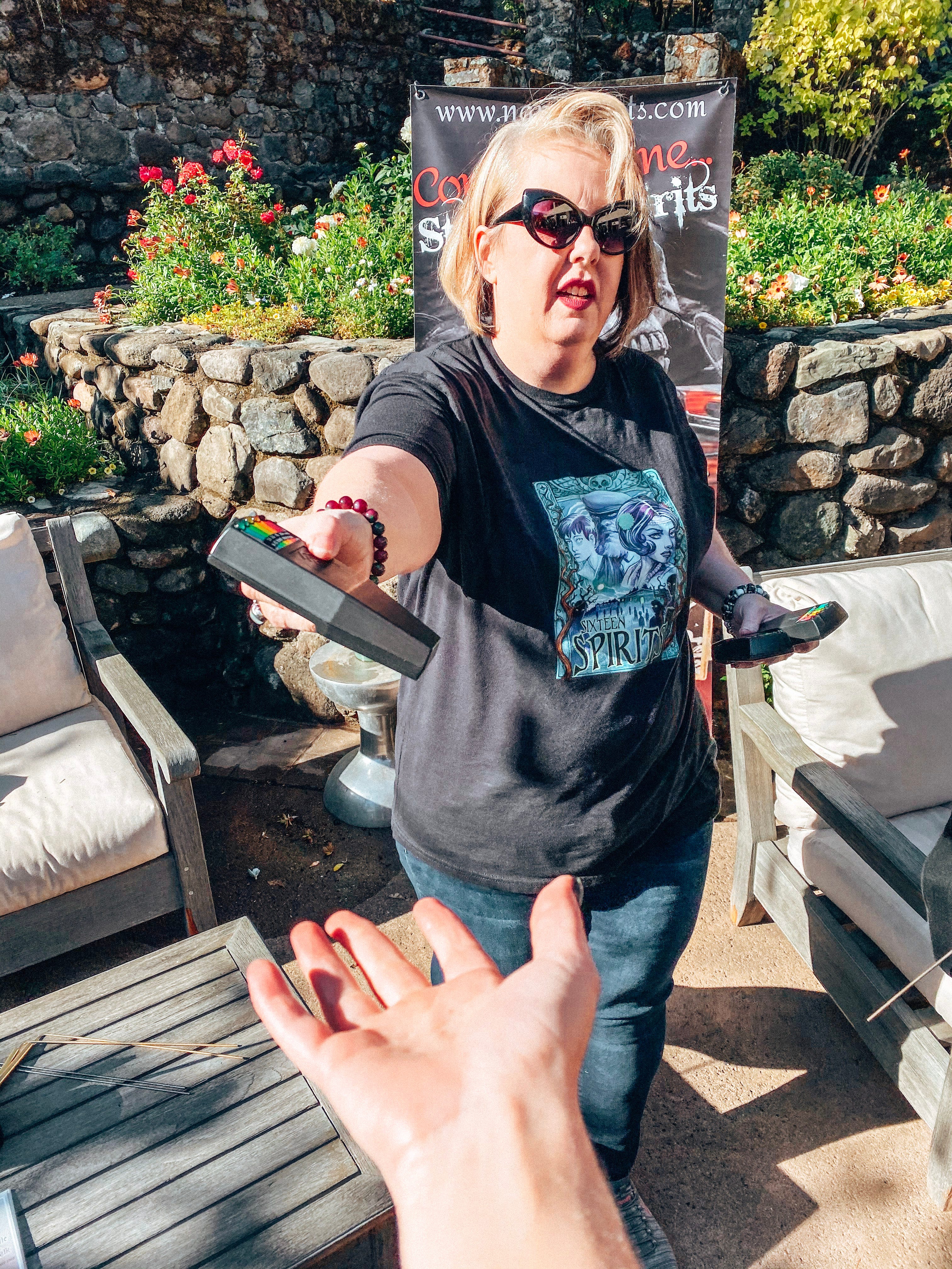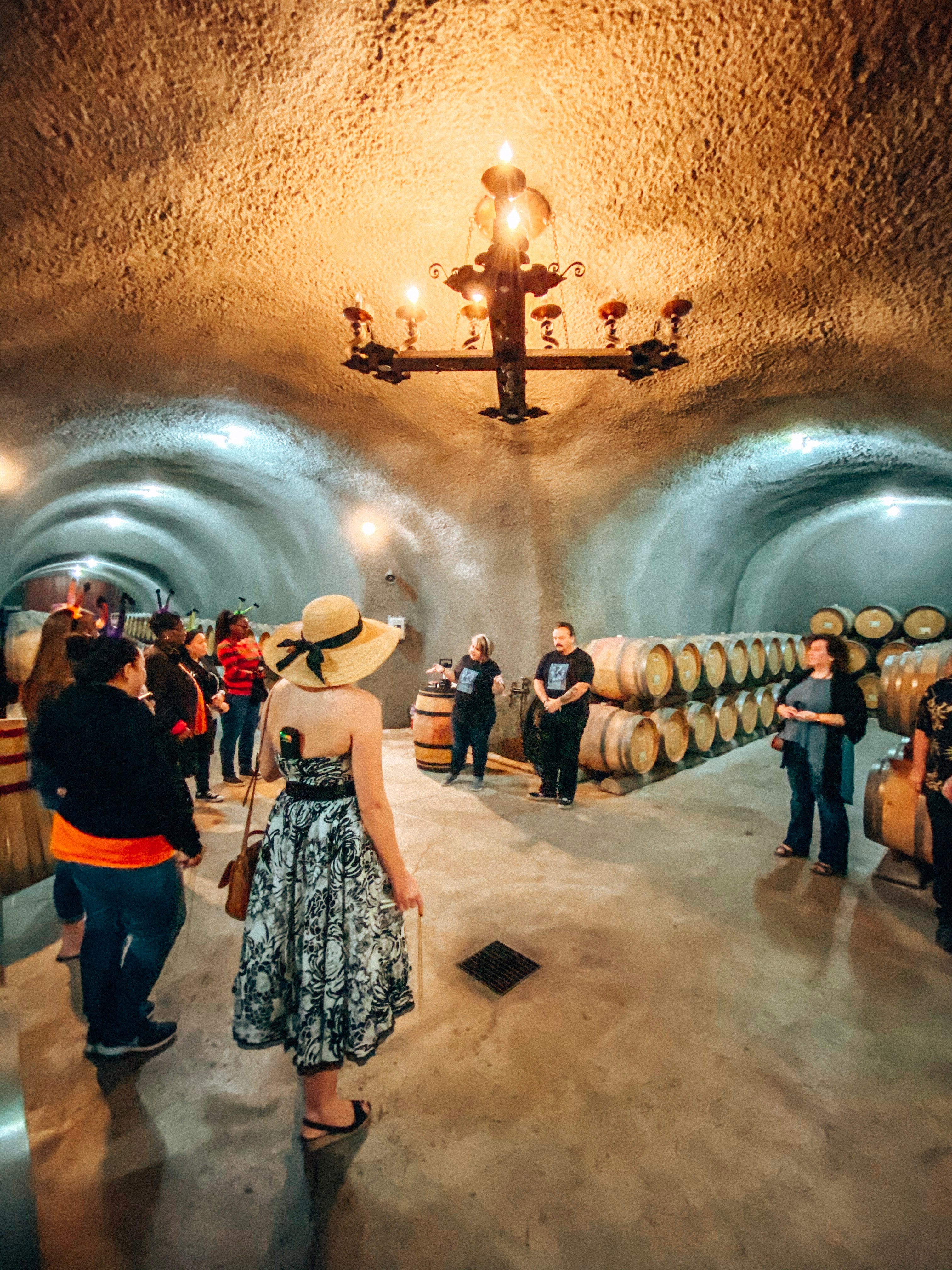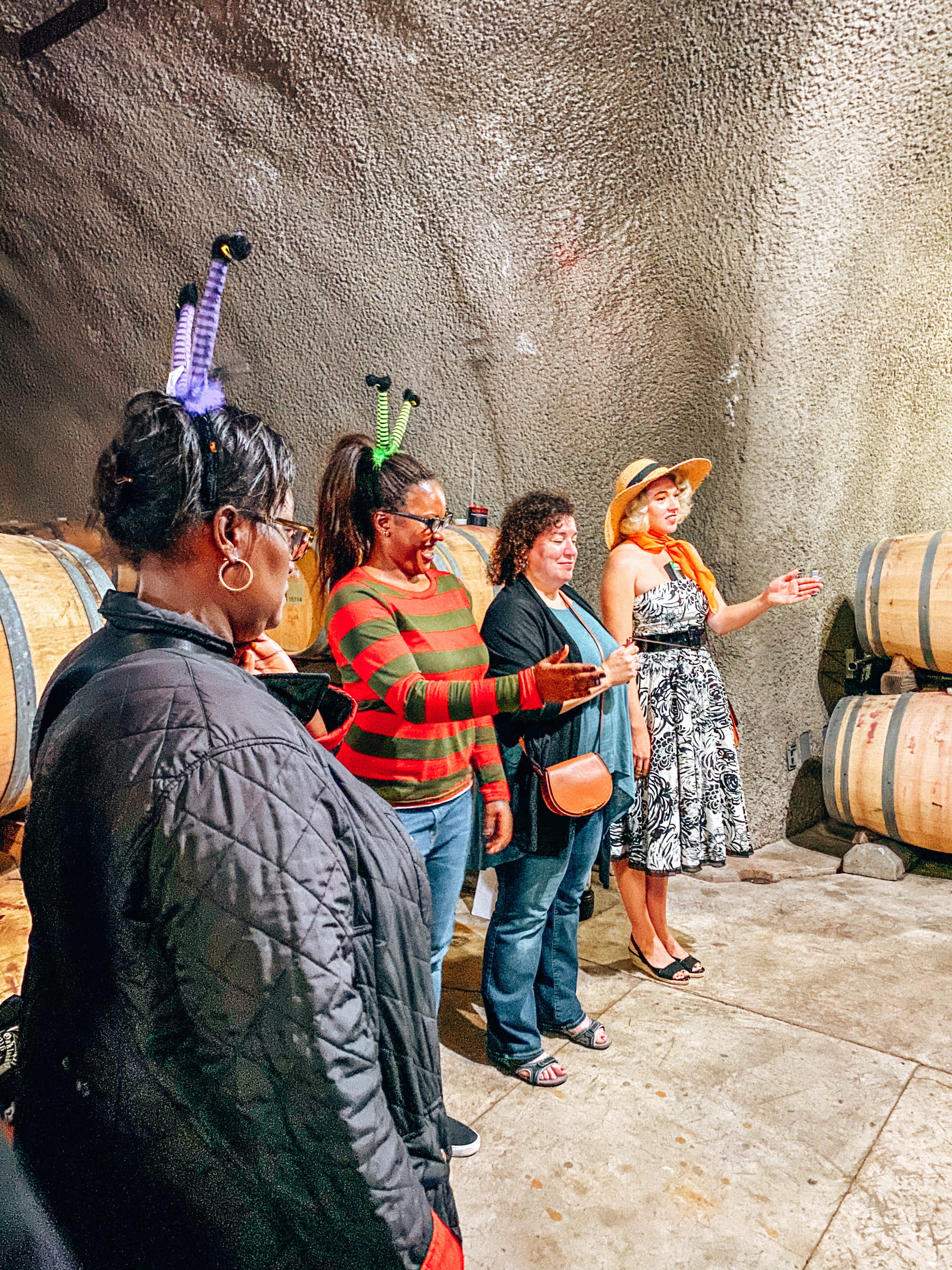 The last visit was to a winery in St. Helena called Flora Springs. This winery is one of Napa’s ghost wineries, which we learned on our visit that during prohibition, some successful wineries were abandoned and left to crumble. But when prohibition was lifted, some of these wineries picked right back up and continued to produce wine. But for some wineries, like Flora Springs, the phrase “ghost winery” takes on two meanings. Yes, it was abandoned during prohibition, but it is also haunted! Some would argue most places that old are purportedly haunted. And Flora Springs embraces their spirits, of both kinds, by offering many fun things to do and taste during Halloween, including elaborately decorated hand-painted and etched seasonal bottle! One of these events we were able to take advantage of was the Sixteen Spirits Historical Ghost Winery Tour and Tasting, with the ghost tour led by local paranormal experts Napa Ghosts. With the tour beginning at 10am, those who arrive early are treated to a pour of the white wine to encourage more…spirit, if you will.