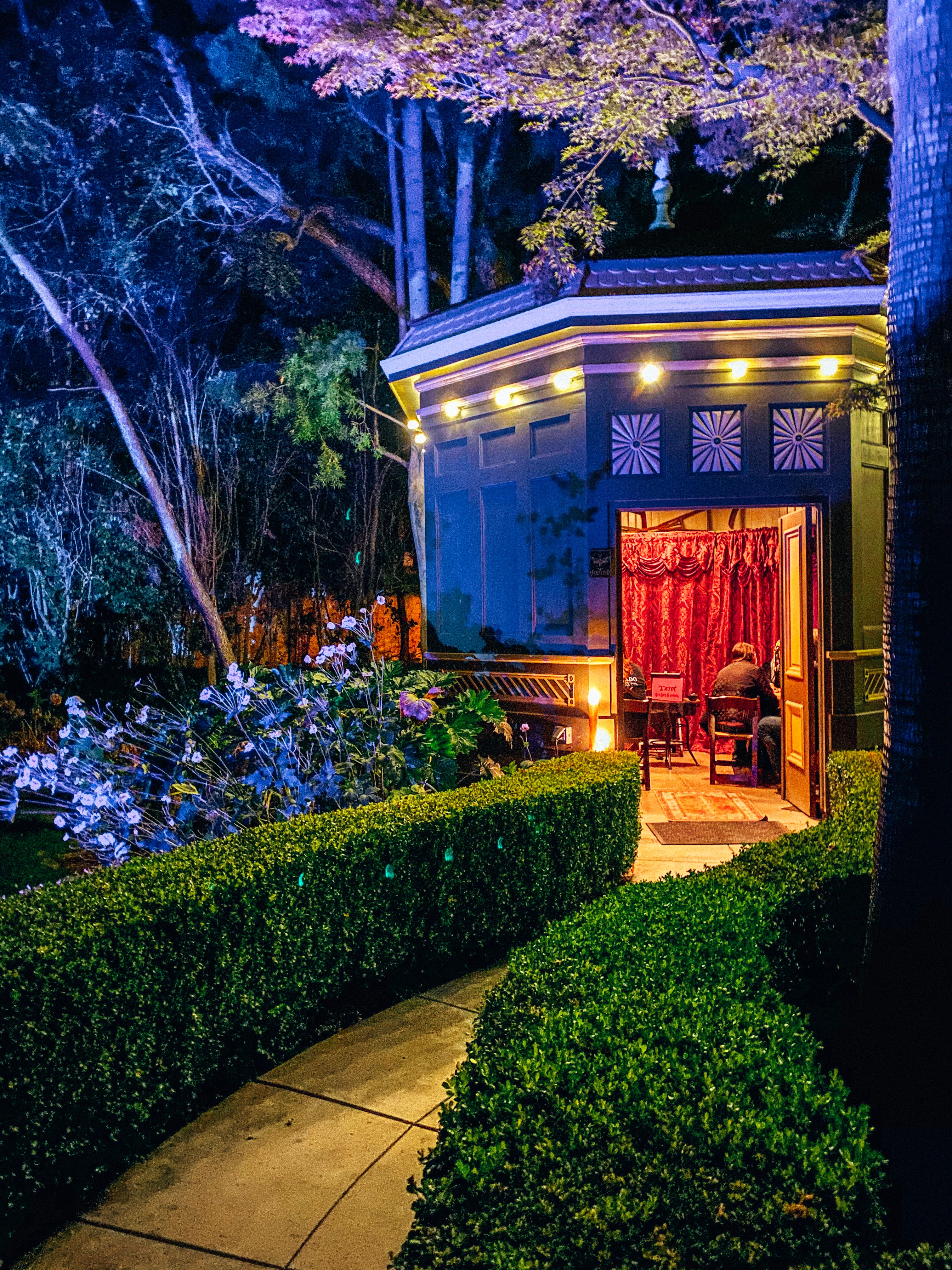 The light show was phenomenal! The 3D projection mapping was so well done! At times, it looked like the house caught fire, and at another point, there was a nod to the 1906 earthquake that did major damage to the mansion. The light show was a beautiful prelude to Unhinged, in my opinion. It told the story of several people who entered the mansion and never exited, which also happened to be the through-line of Unhinged. Our time slot came for Unhinged and we were broken up into groups of about 8–10. The show began where the day time tour ended and it felt like we were retracing our steps. The house was transformed! I was shocked at some of the effects used in the show, especially considering how minimal the footprint for them was during the day.