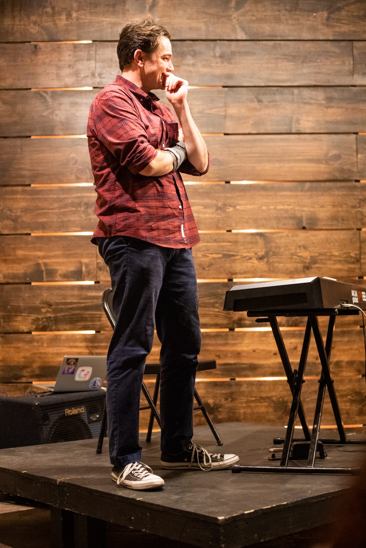 After a brief introduction and welcome from Simon, we’re treated to a song by his student, Monica (Ruby Farley, in the first of dual roles in her debut performance), which quickly transitions into the real reason for the night’s gathering: the resurgence of Simon as a performer.