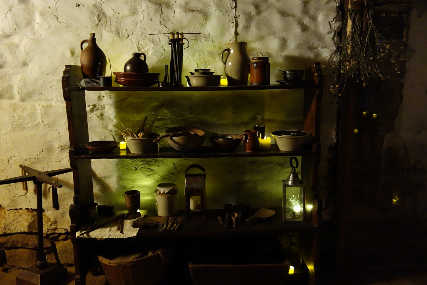 But we’re not in just any old family home: we are in the storied Wyckoff House, which is the oldest house in New York City. It has been lovingly restored in the colonial style and now functions as a museum, except for tonight, when it has been transformed into the set for The Visitation. This very old, worn house is mostly dark on this brisk November evening, save for some carefully placed votives. There’s a soft, orange light coming up through the floorboards from the basement.
