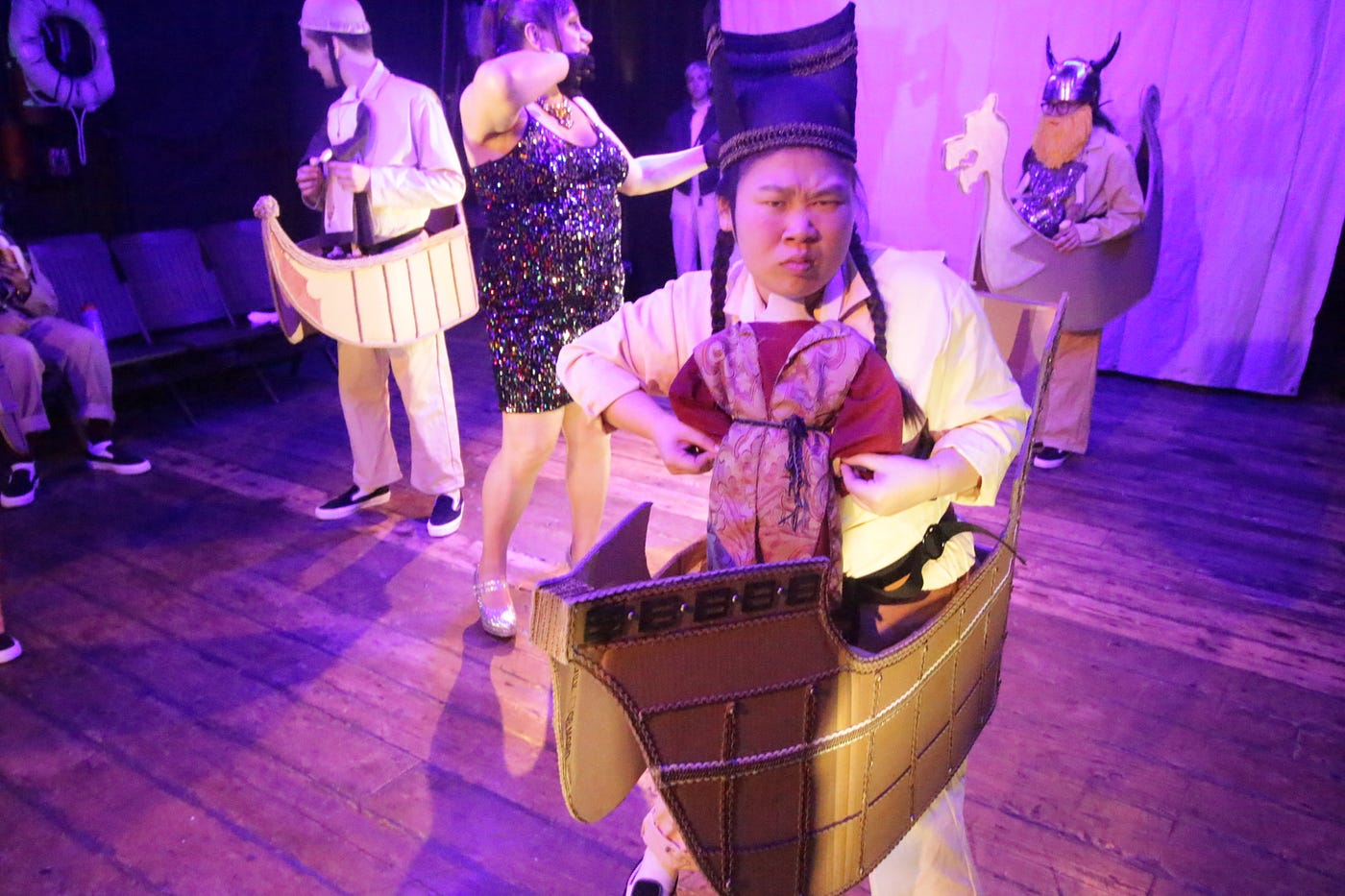 I Migration is a mosaic of stories, one that feels robust with multiple smooth and rough edges. The potential for transporting the audience to another time or another place using the venue of the barge is never integrated into the piece. The audience participation is heartfelt, but never quite earned. The stories in the play are passionately portrayed. But I can’t help wonder about the possibilities of Falconworks Theater Company using the ship as a truly integrated starting point for the mythology of mankind and then turning the “evacuation” scene into one that disperses the audience and cast out of the barge and into the surrounding garden and the pier, leaving new sections of the area for audience members to explore. I would have loved to feel the full force of these highly personal immigration stories against the backdrop of the Statue of Liberty, instead of what we got: an assembly line of scenes where the whole never felt more than the sum of its parts.