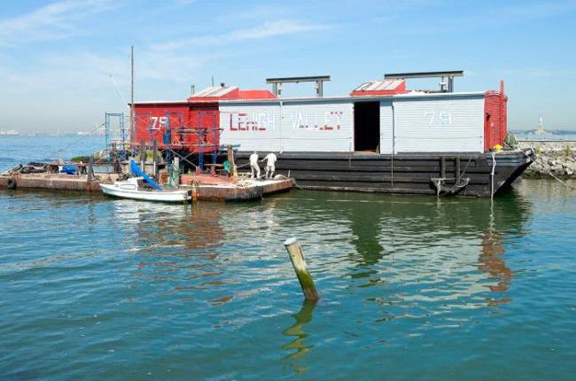 The Pier 44 Waterfront Garden located in Red Hook, Brooklyn gifts you with a jaw-dropping view of the Statue of Liberty. She is so close that I feel like I could just reach out and touch her. Adjacent to the Garden, bobbing lazily next to the pier, is also a century-old wooden barge. Once called “Lehigh Valley Railroad Barge #79,” this now obsolete cargo ship is not only the permanent home to the Waterfront Museum but also the location for Falconworks Theater Company’s site-specific production of I Migration.