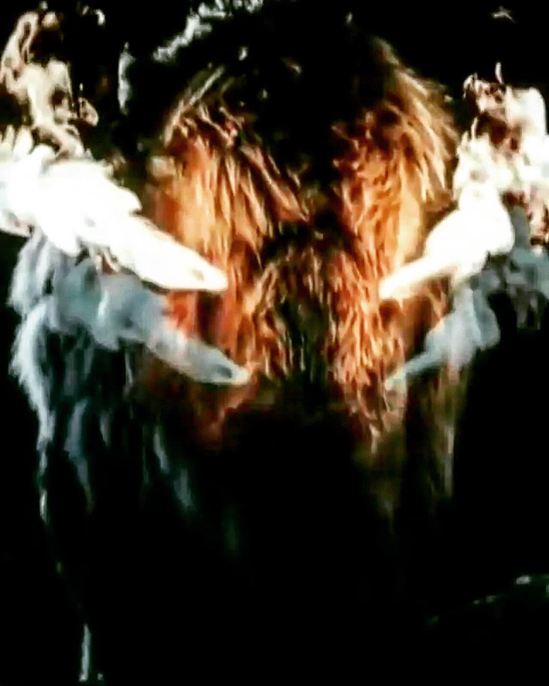 In the back patio area, two interactive experiences had been created, large standalone cubicles labeled ‘SHADOW MOON’ and ‘MR WEDNESDAY/MR WORLD.’ Both were video activations, where you stood immersed in a space, but to no real end. In the ‘WORLD/WEDNESDAY’ box, you could control the video feed that covered the walls around you with a single slider, to show you video edits that reflected Mr Wednesday and his old god realness, or Mr World and his technological splendor. According to the attendant, moving the slider would blend the footage, but it was difficult to tell how much it did so. In the ‘SHADOW MOON’ room, a very cool idea went under-realized. Stepping into the dark black room, you found yourself surrounded by mirrors, as in a funhouse. A small wrought iron grate, like the kind you’d find in front of a fireplace, stood in the middle of the space. Once the doors were closed, the White Buffalo with its flaming eyes appeared, and a voiceover track provided by Ricky Whittle advised the need to pick sides in the coming war between the old gods and the new. It was not a long message. The idea of the mirrors was cool, but the angles or the strength of the projection weren’t quite right to get the effect that I think was intended.